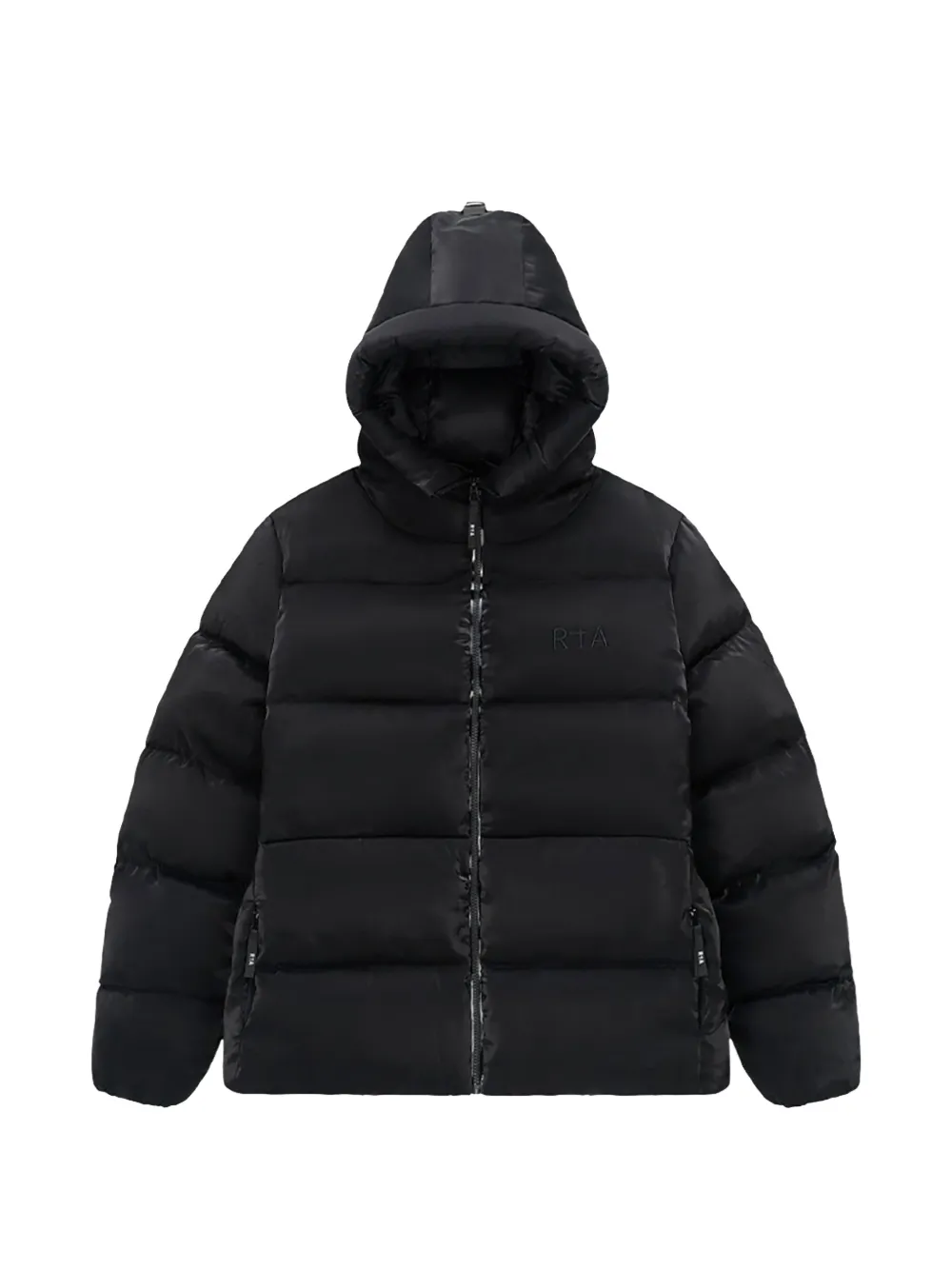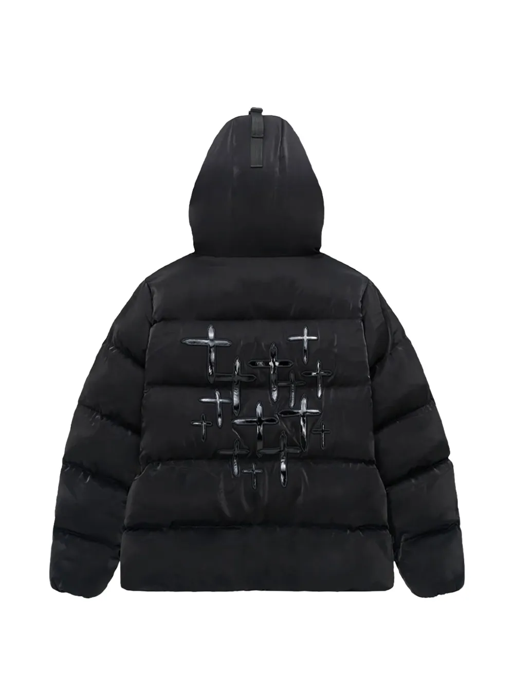 black padded design front zip fastening hooded long sleeves