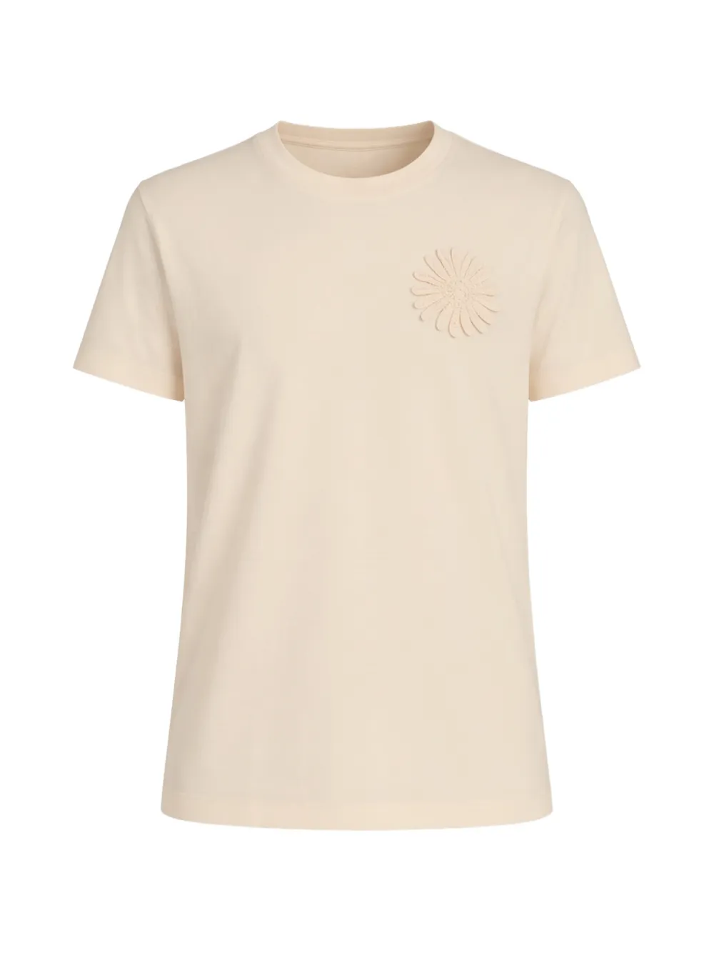 sky blue patch short sleeves round neck cotton ribbed trim