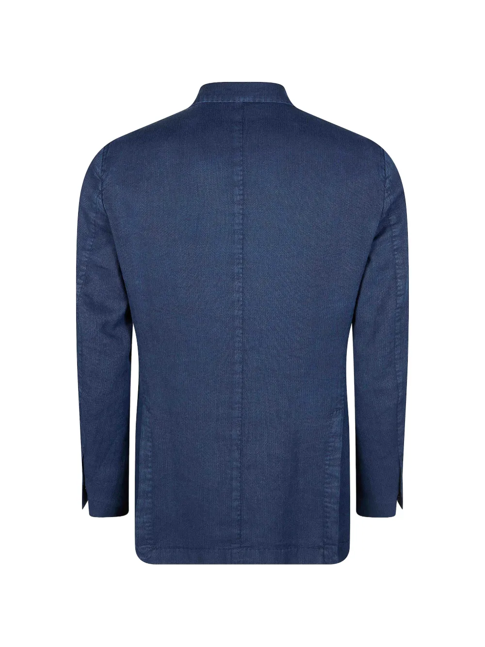 blue textured finish lapel pin chest welt pocket flap pockets button fastening