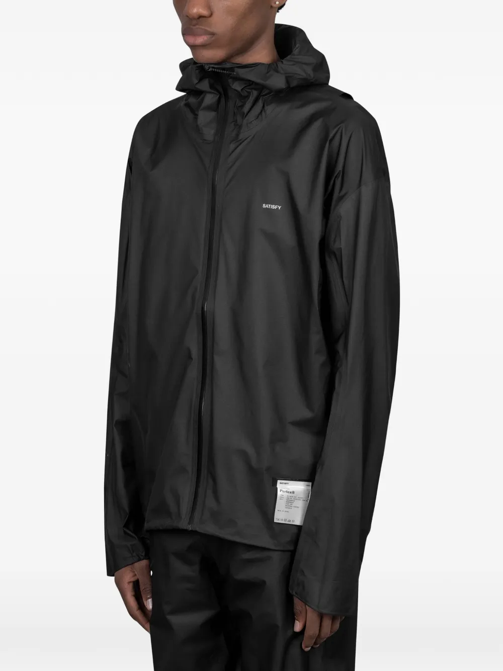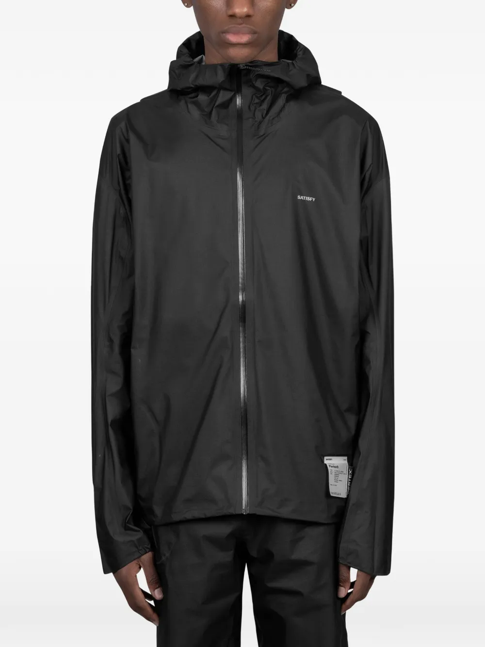 black hood zip fastening logo detail