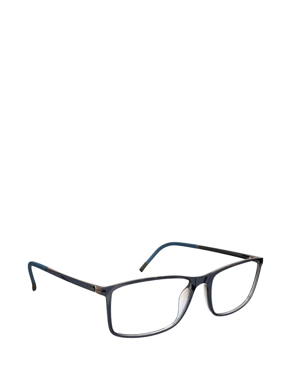 navy blue rectangle frame clear lenses integrated nose pads straight arms curved tips All glasses from FARFETCH are sold as non-prescription frames. These glasses come with a protective case.