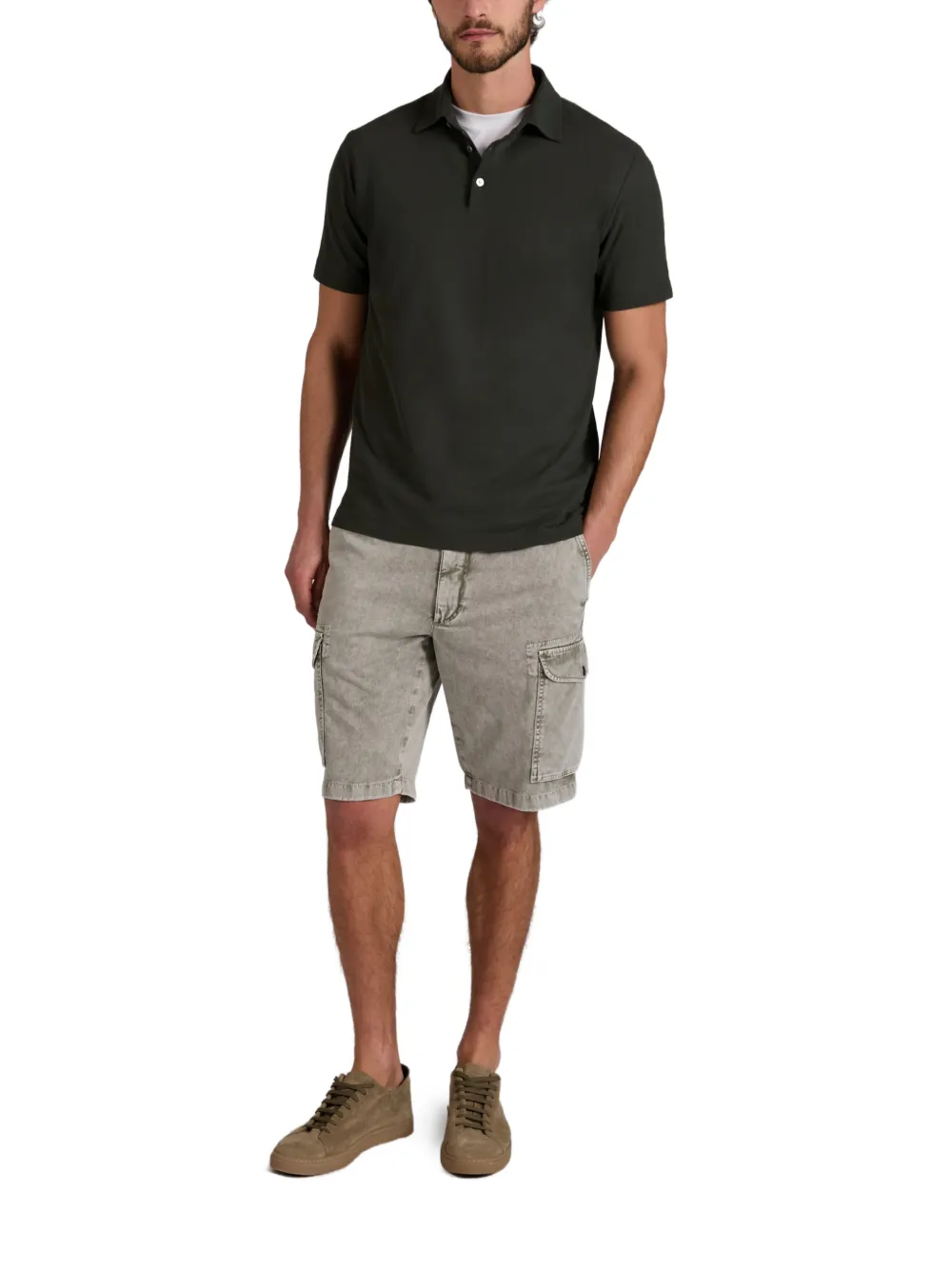 light green cotton side cargo pockets buttoned back pockets belt loops concealed zip fastening