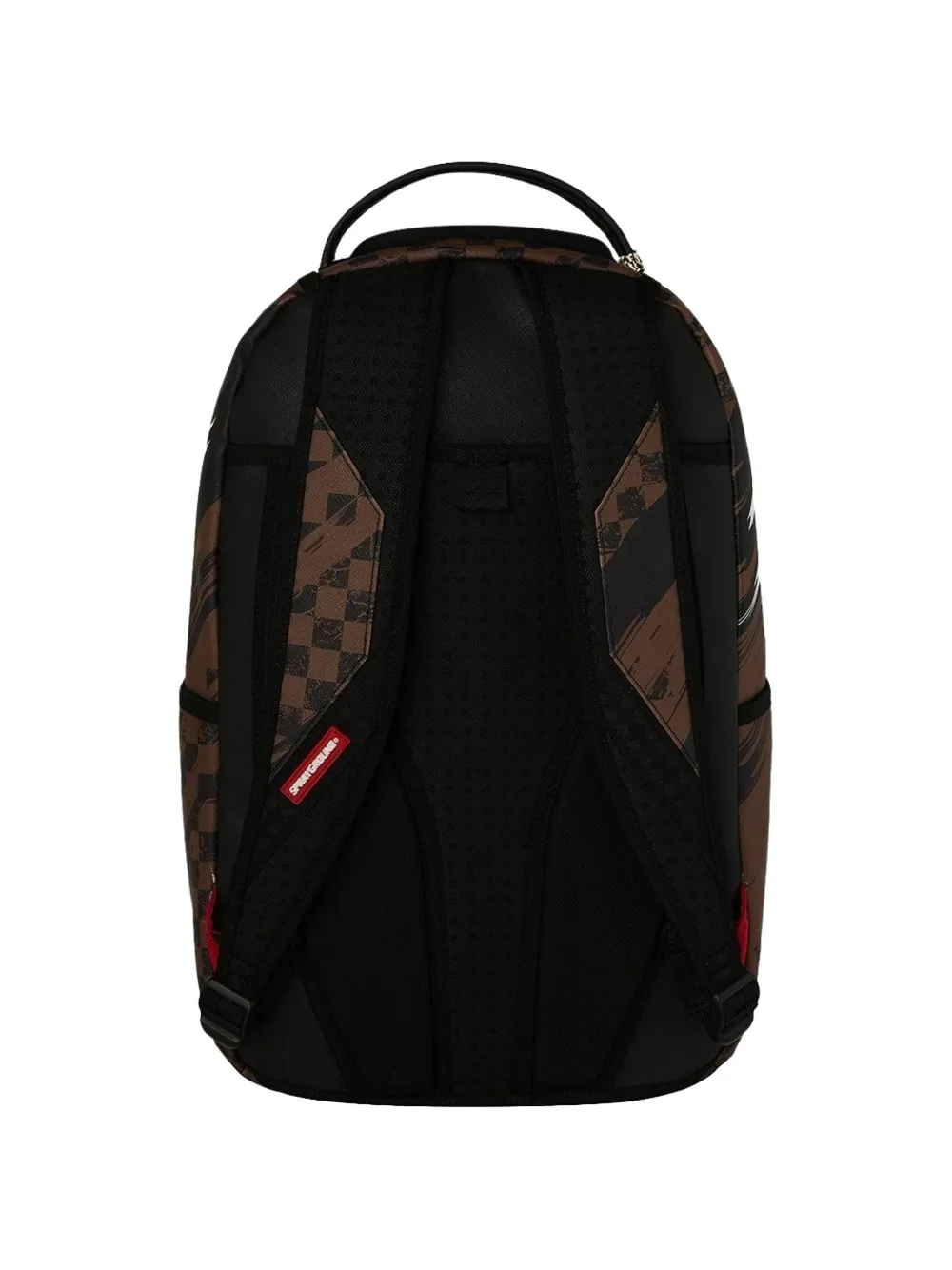 black Shark Mouth print checkered pattern zip-around fastening single rounded top handle adjustable shoulder straps front zip-fastening pocket side slip pockets gold-tone hardware