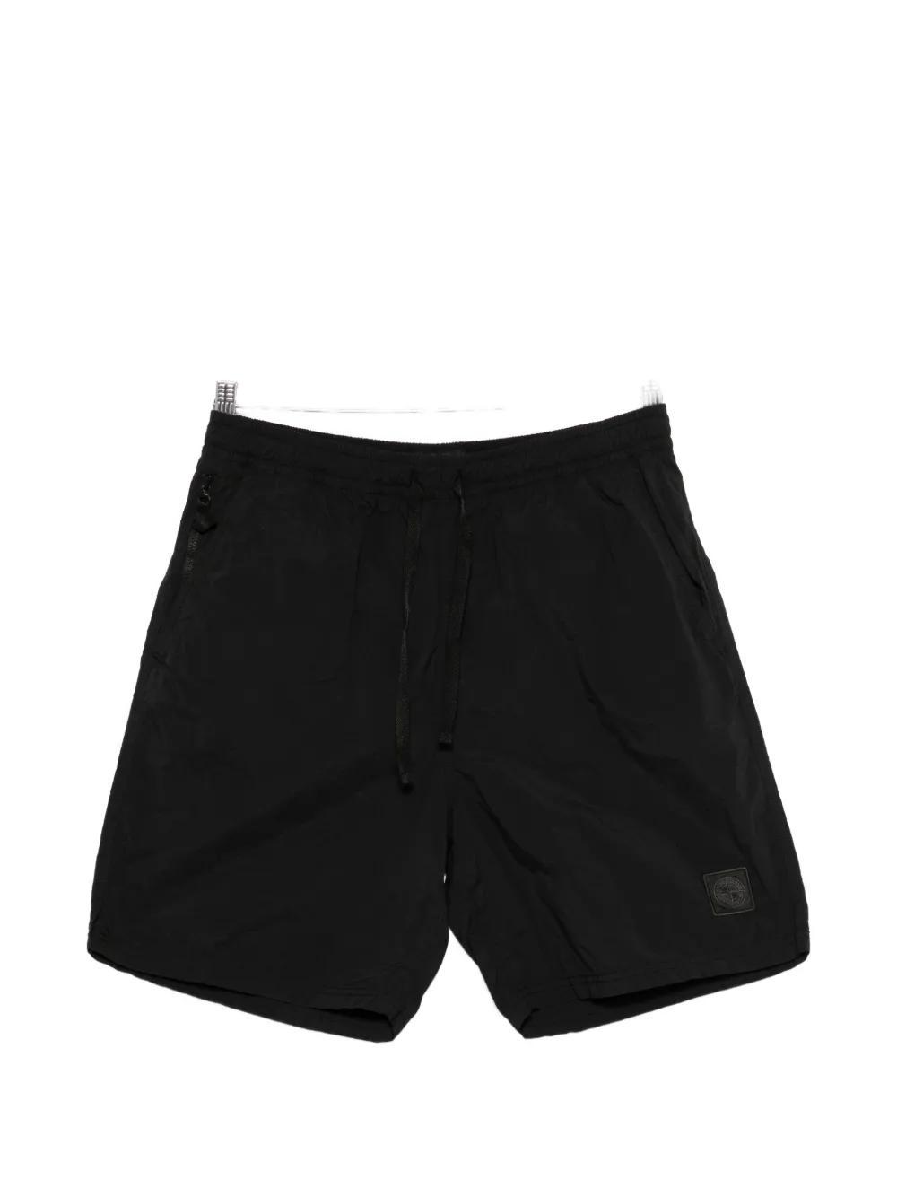black drawstring fastening side zip detail logo patch Be mindful to try on swimwear over your own garments.