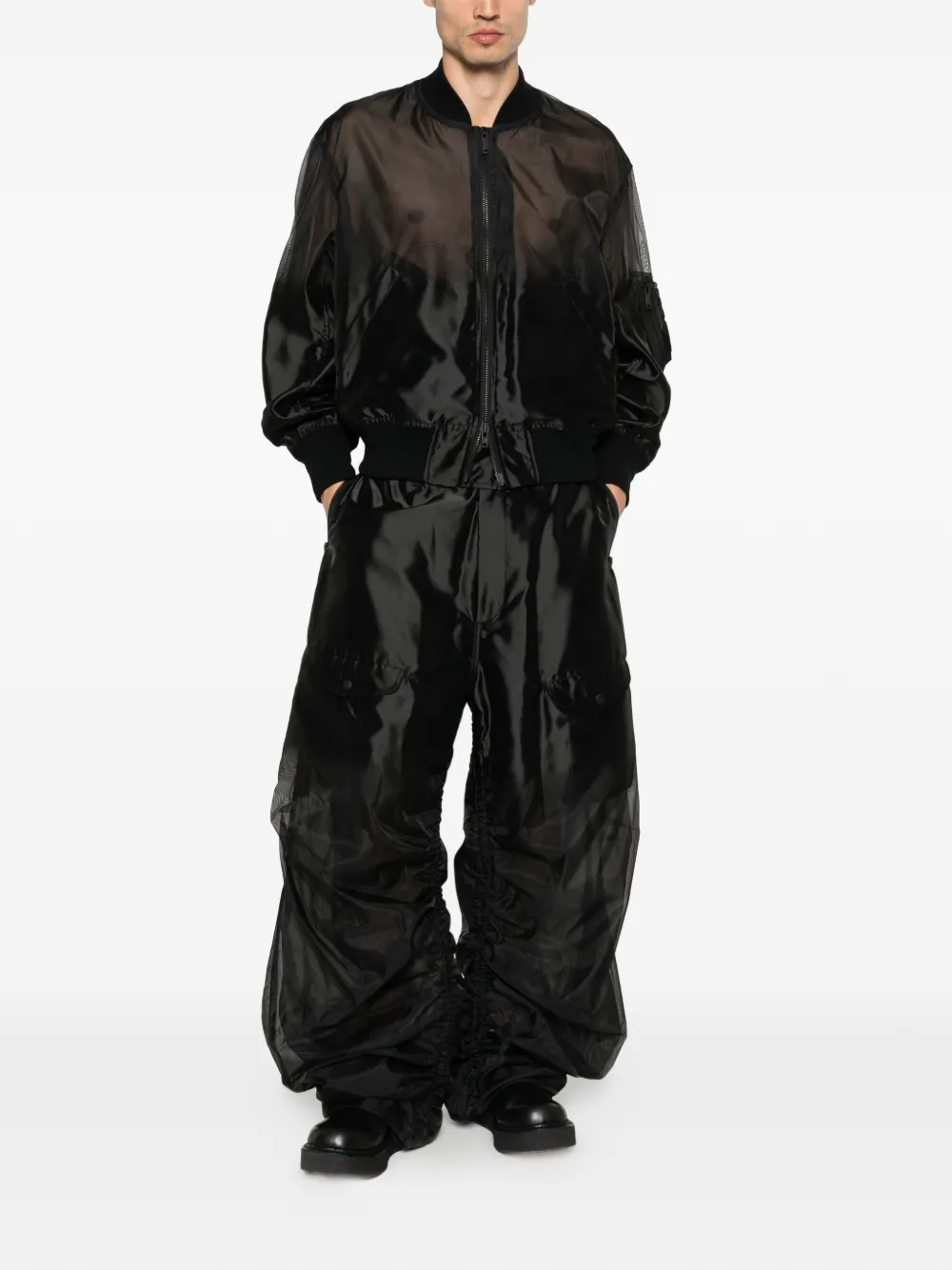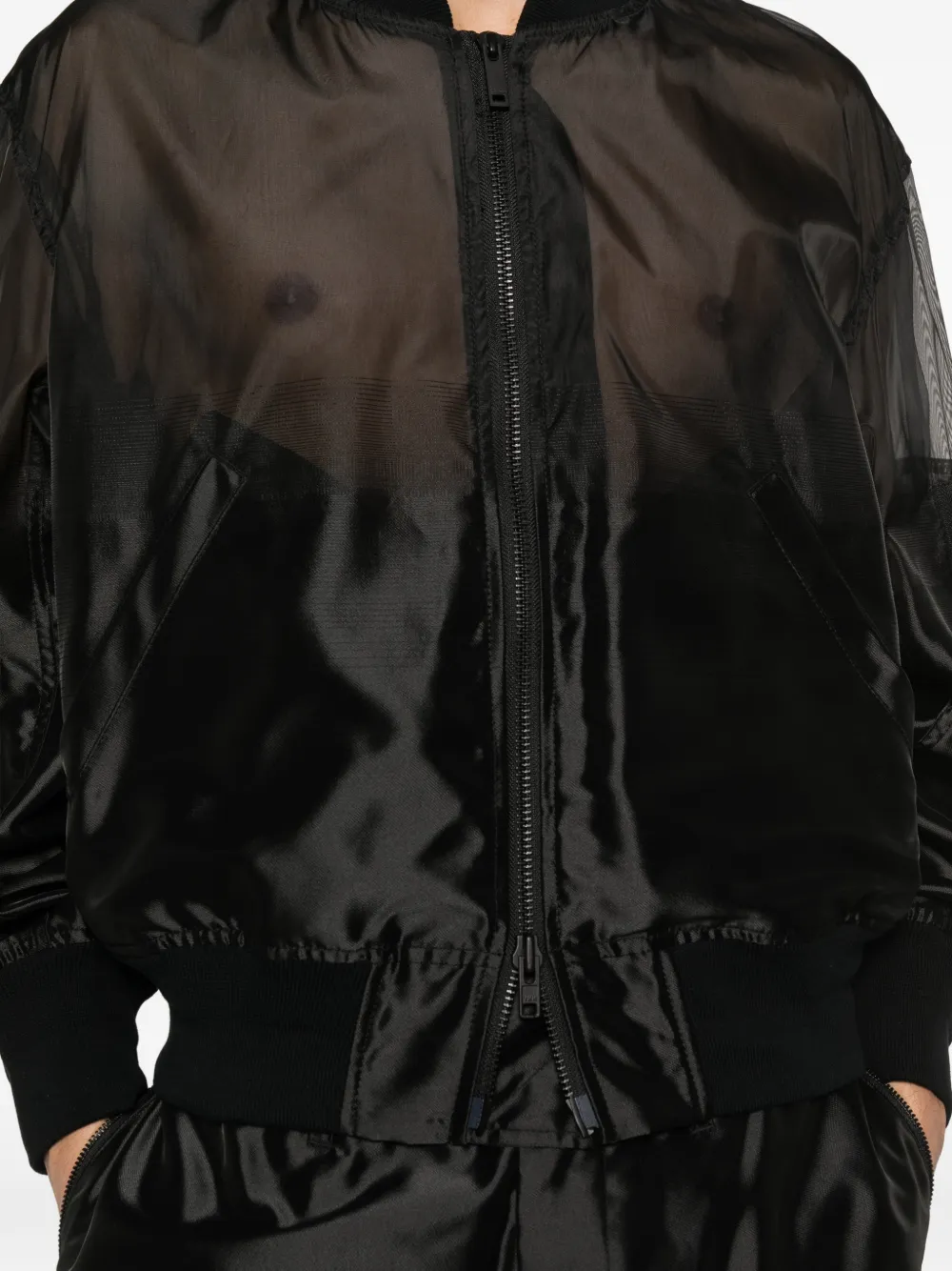 black zip fastening rib trim piping welt pocket long sleeves