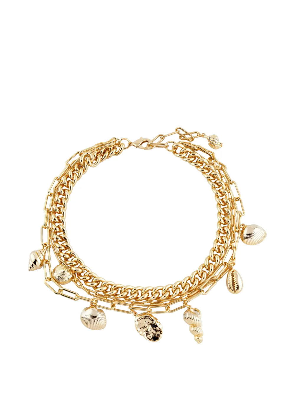 gold-tone polished finish multi-layer design curb chain paperclip chain shell charms lobster claw fastening