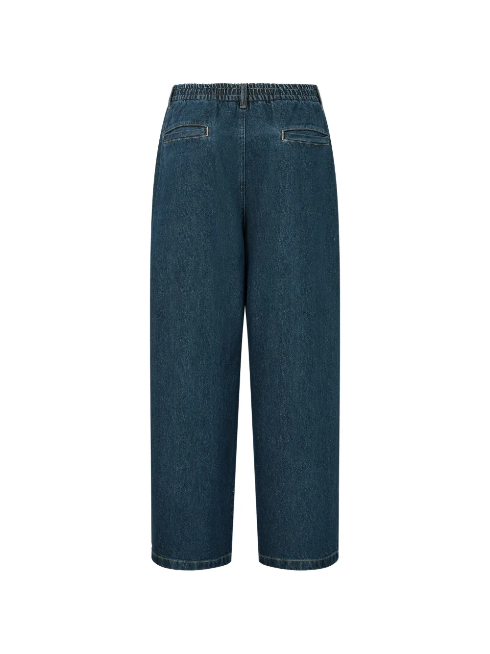 dark blue cotton elasticated waistband drawstring fastening pleat detailing welt pockets
