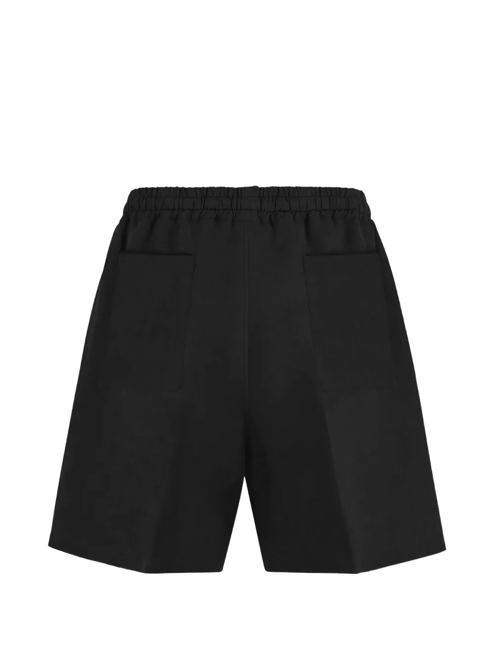 black elasticated drawstring waistband two side slit pockets two rear patch pockets pressed creases