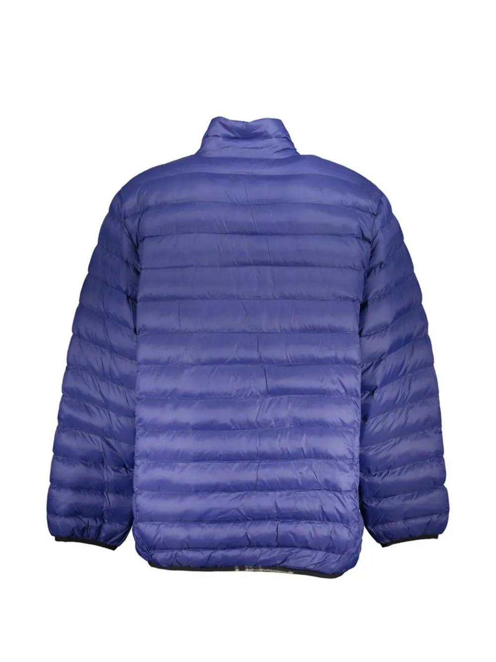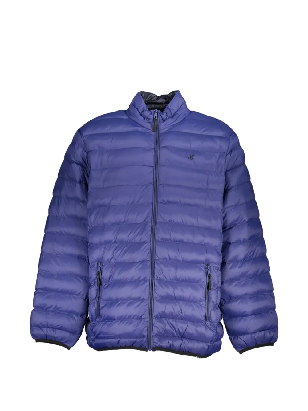 blue horizontal quilting stand collar zip fastening side zip-fastening pockets long sleeves elasticated cuffs