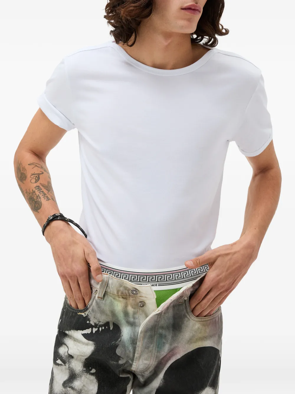 Playera de algodón jersey de manga corta, con un bordado en hilo del logotipo Versace en la parte posterior.