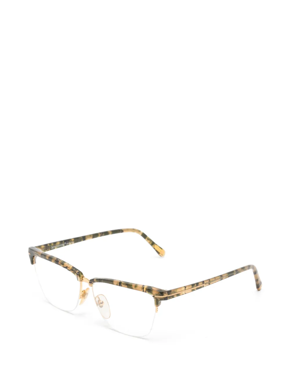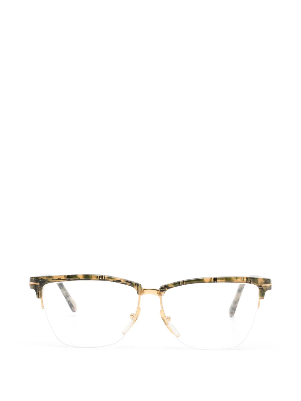 light brown clear lenses half-rim design gold-tone hardware nose pads curved tips Condition: EXCELLENT. This previously owned item is in near-perfect condition with no signs of damage or use.