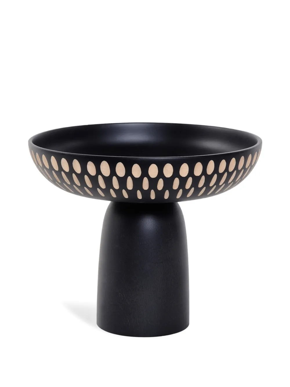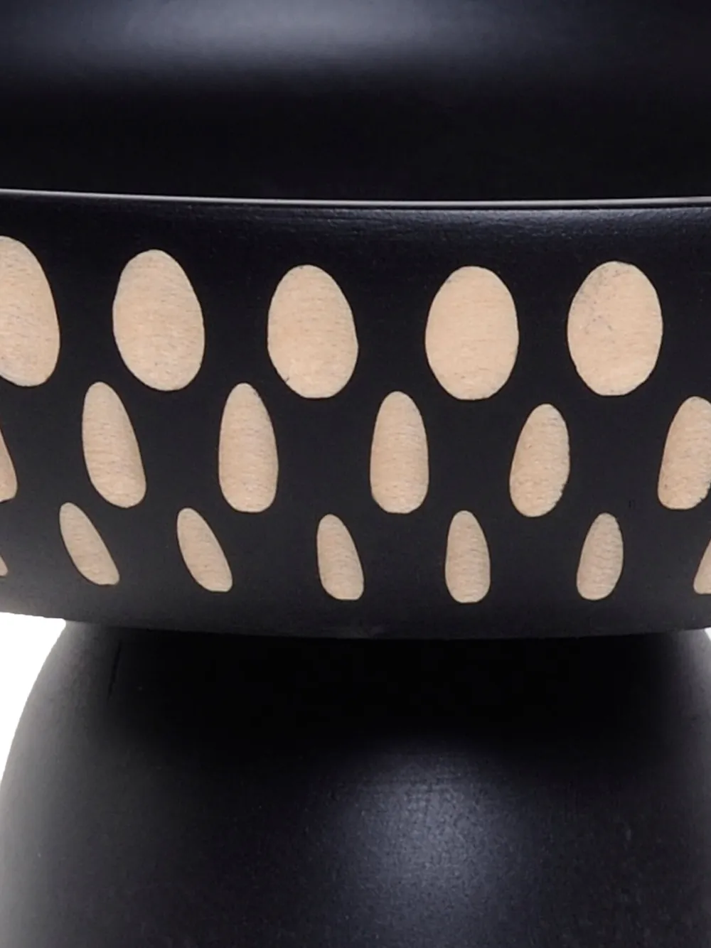 Diseño de dos tonos y estampado con motivos geométricos. Material: madera.