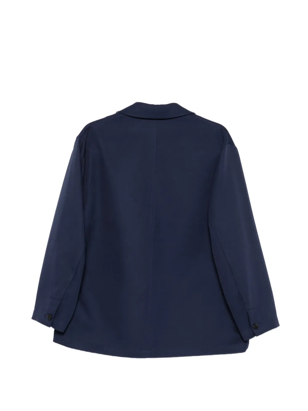 navy blue spread collar front button fastening chest patch pocket two front patch pockets long sleeves buttoned cuffs straight hem