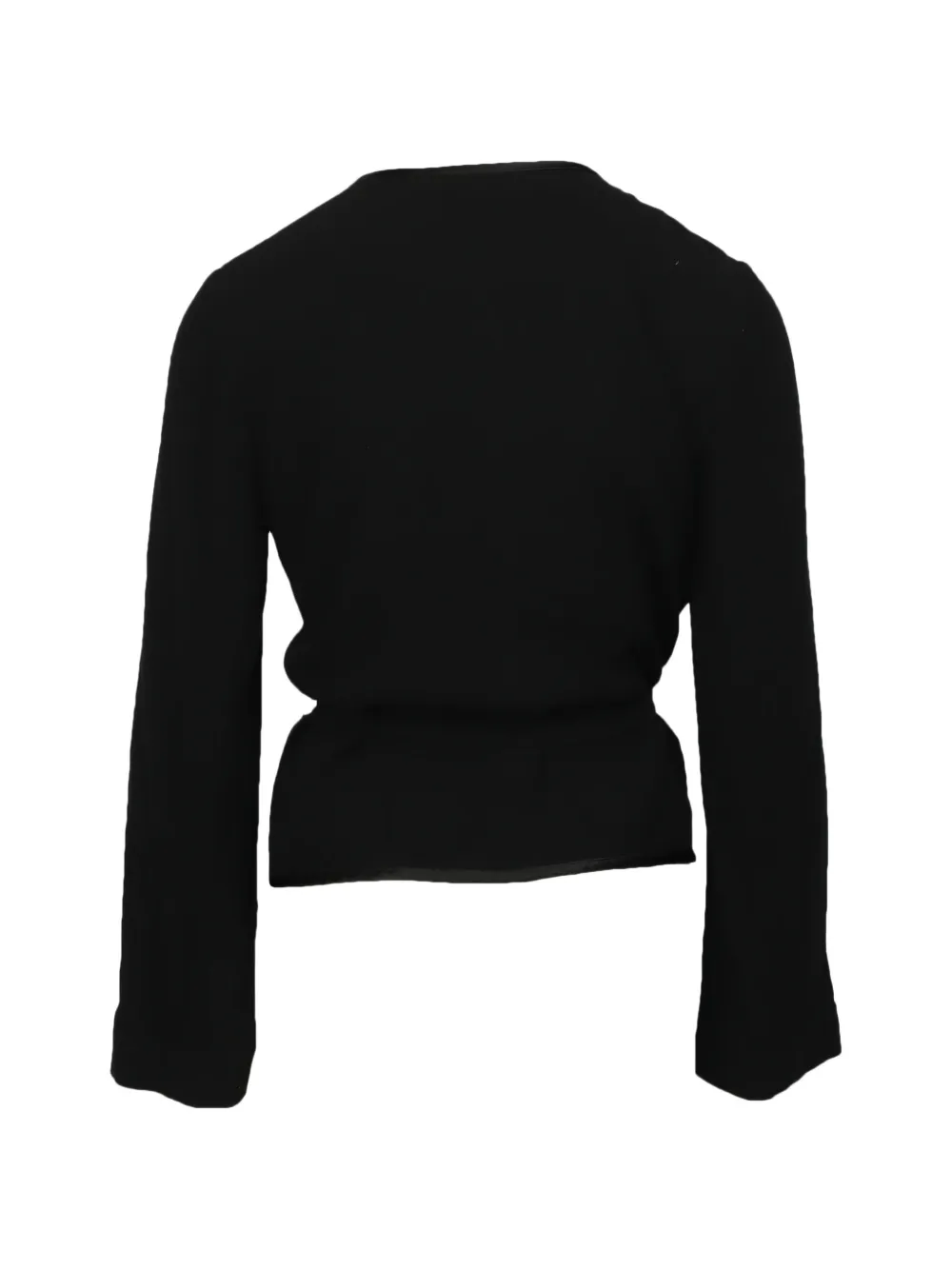 black V-neck long sleeves wrap style Condition: EXCELLENT. This previously owned item is in near-perfect condition with no signs of damage or use.