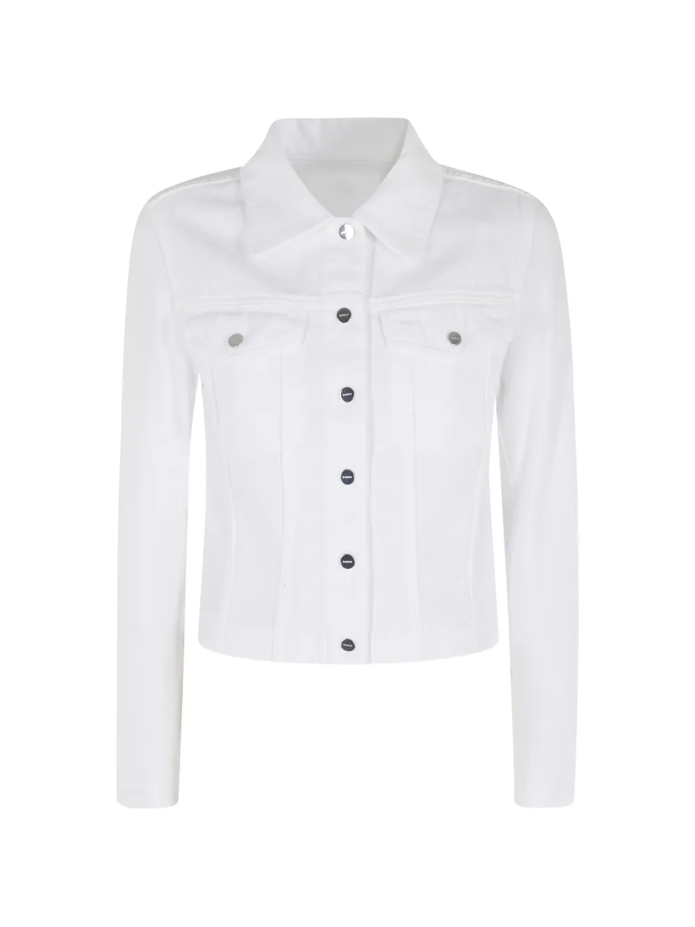 white flap pockets button fastening long sleeves silver-tone hardware collared