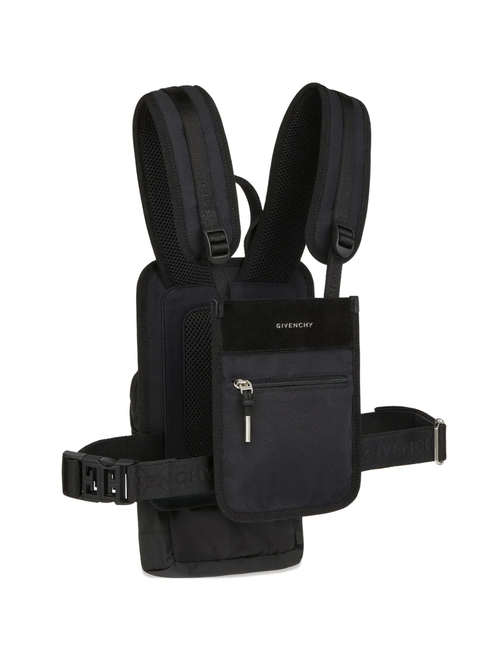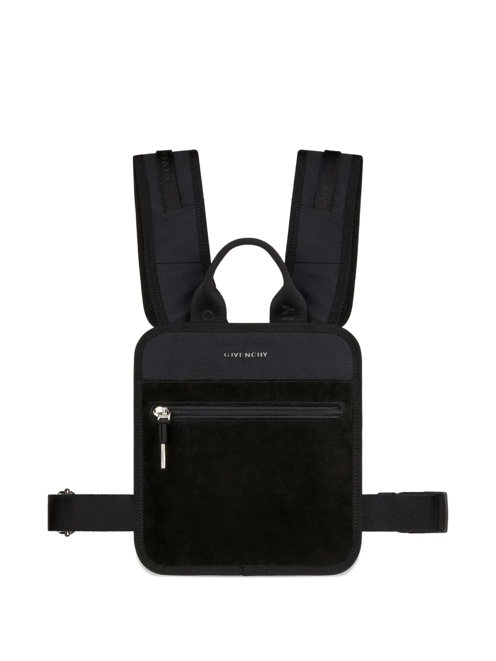 black adjustable shoulder straps front zip-fastening pocket side buckle fastening silver-tone hardware