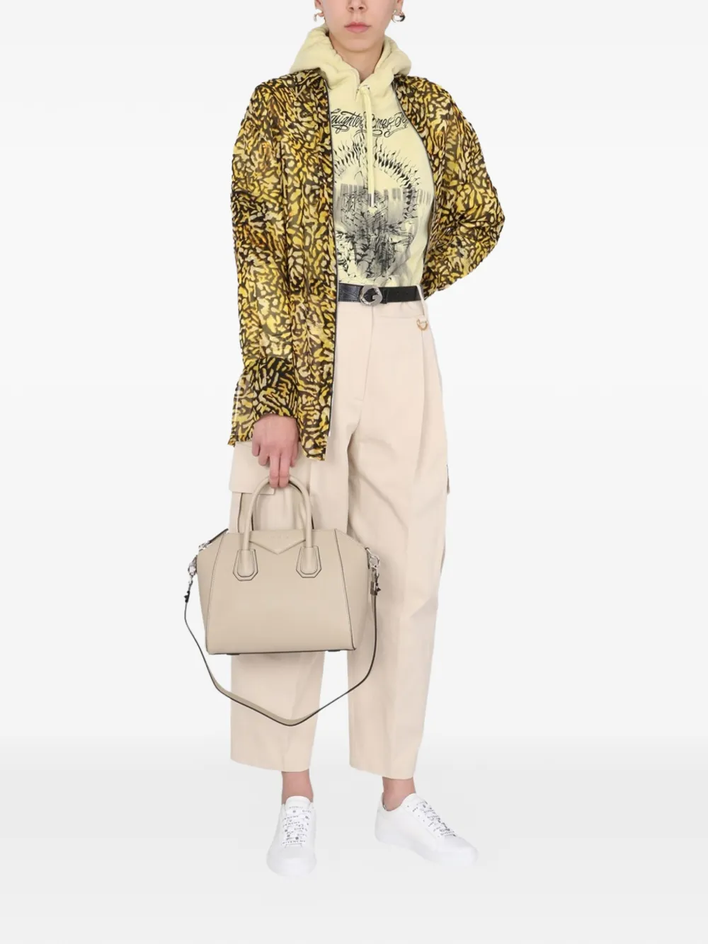 yellow and black patterned zip closure long sleeves sheer