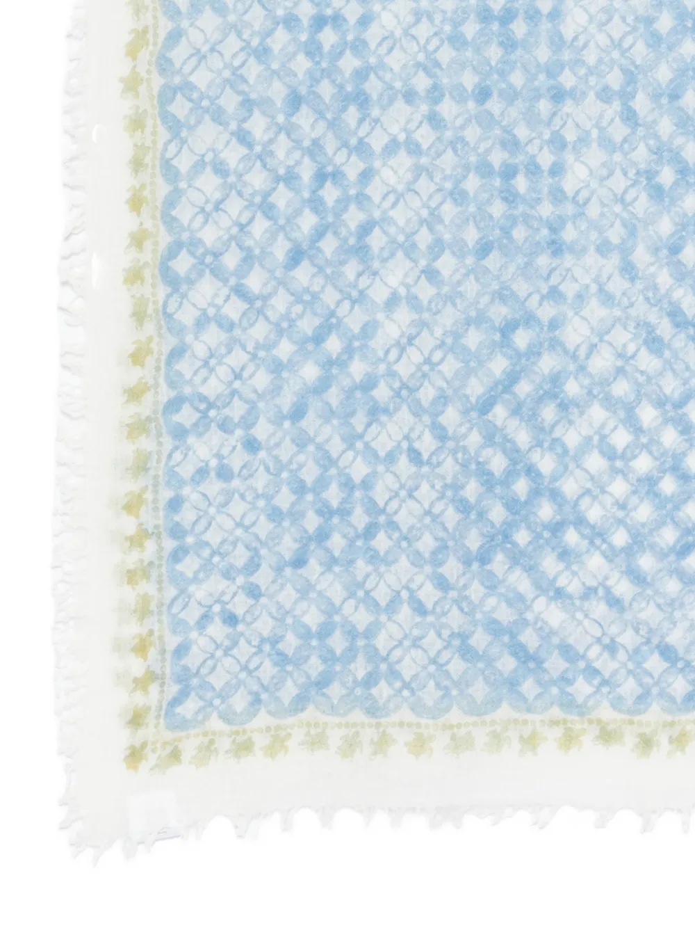 light blue geometric pattern fringed trim