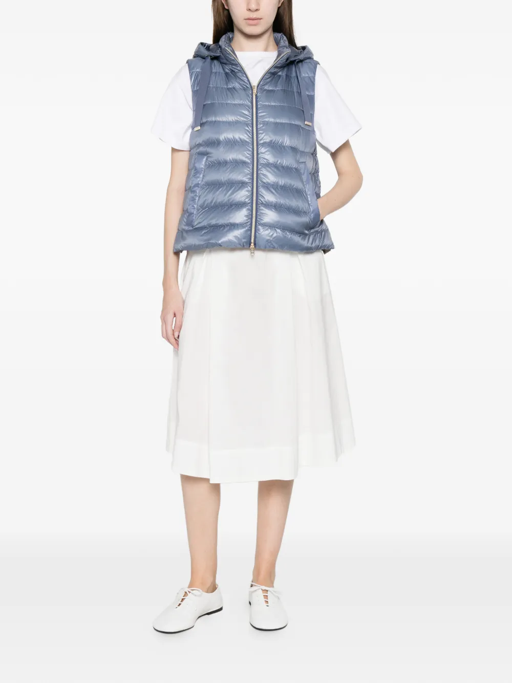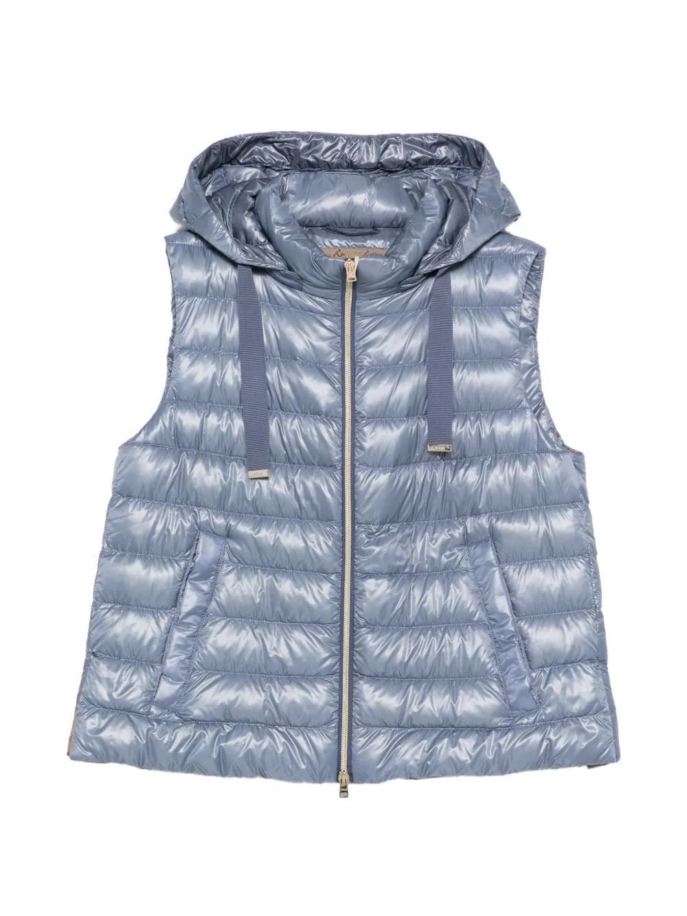 azul claro diseño acolchado cierre de cremallera capucha sin mangas bolsillo con ribete