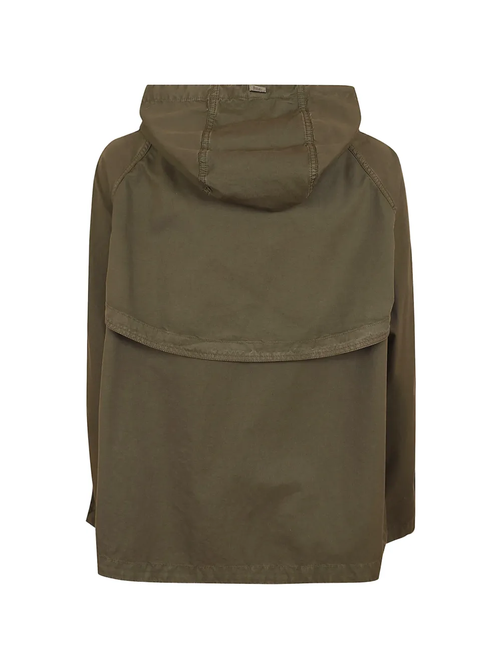 green button fastening drawstring hood flap pockets buttoned pockets logo buttons
