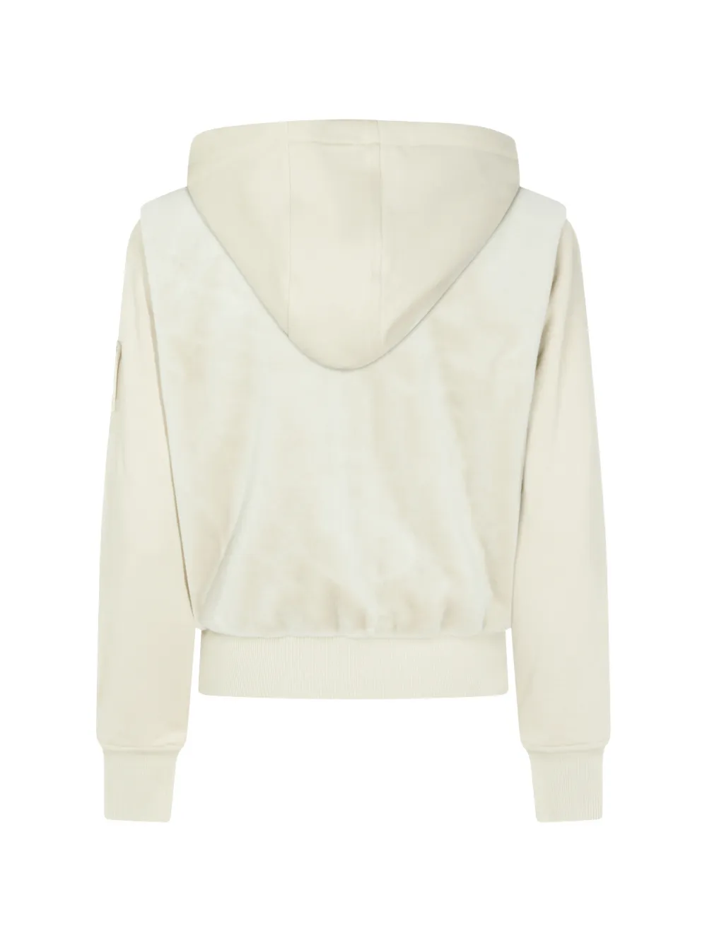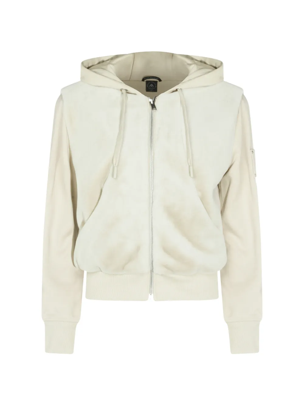 beige square patch ribbed hem drawstring hood zip fastening ribbed cuffs