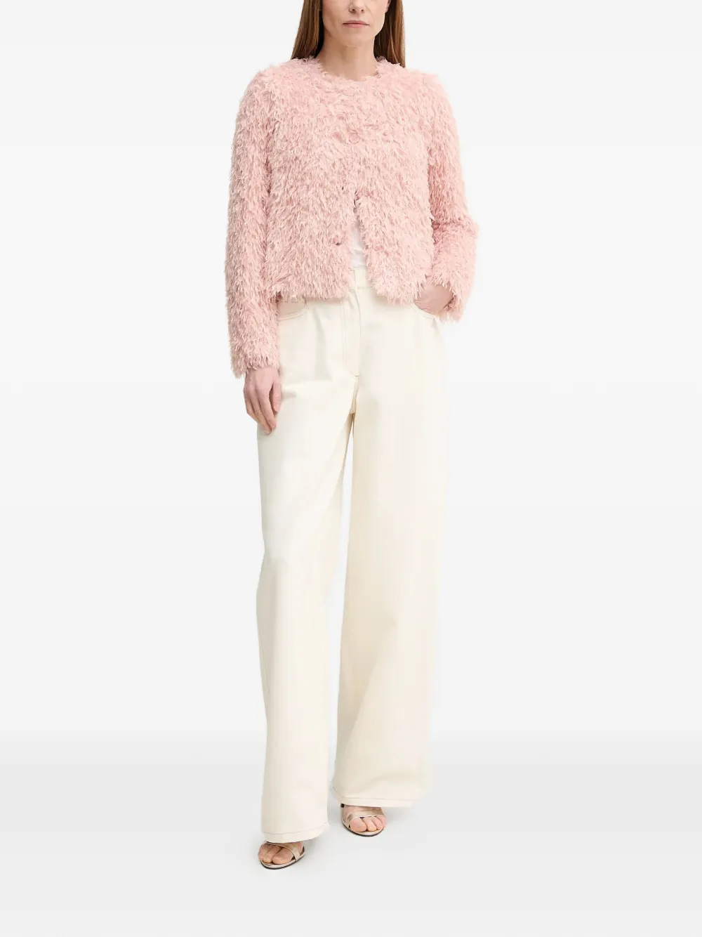 light pink textured design front button fastening long sleeves round neck