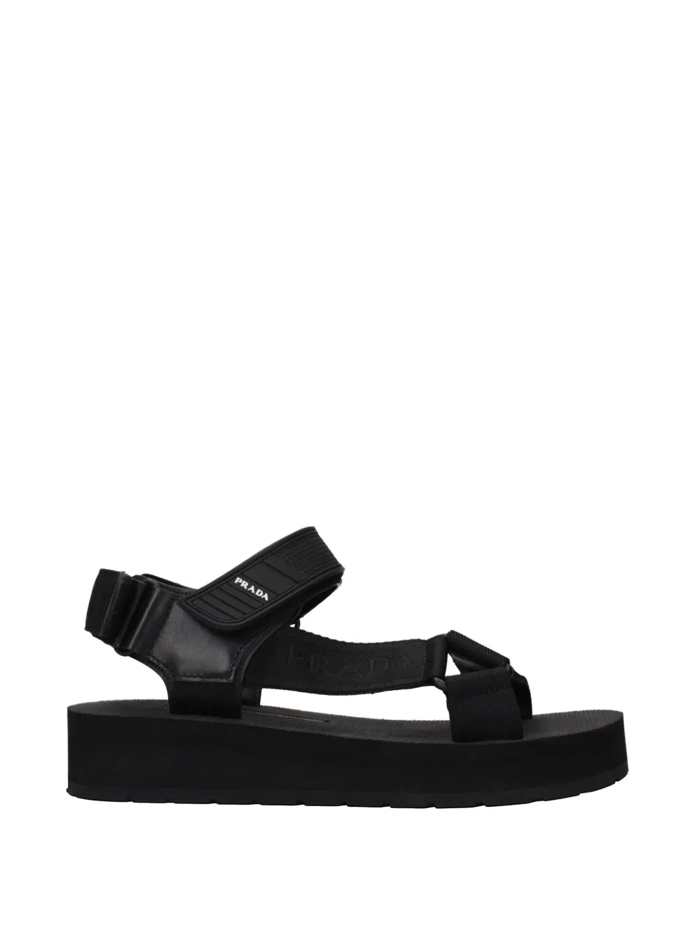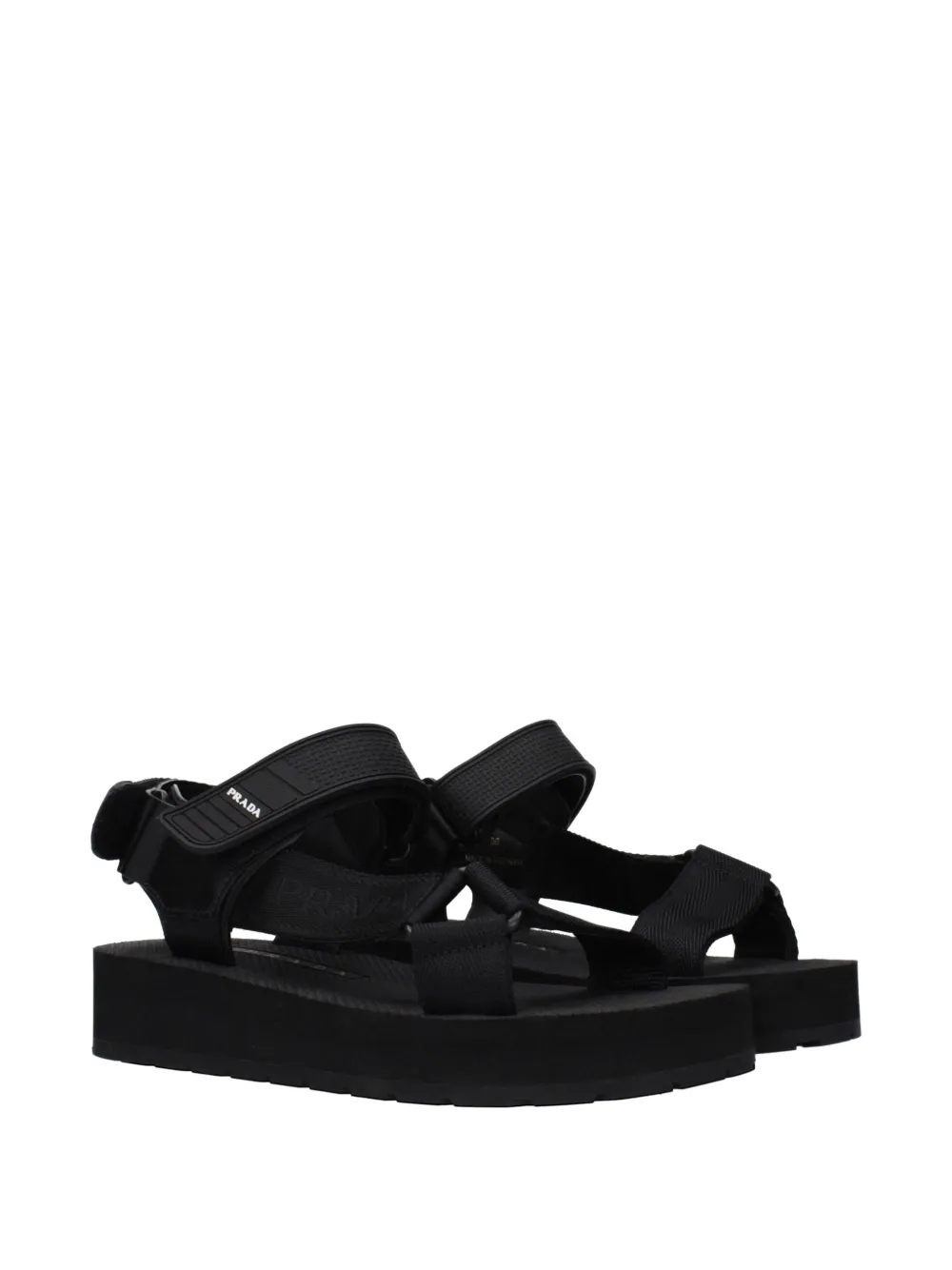 black touch-strap fastening logo-print strap open toe platform sole branded footbed
