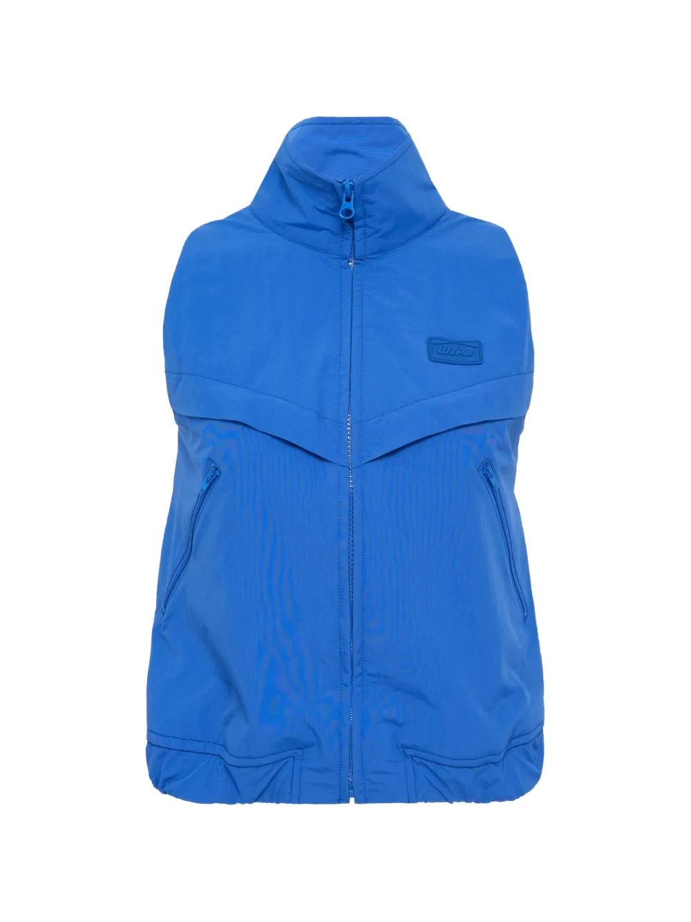 azul cierre de cremallera cuello alto parche del logo bolsillos con cremallera en los laterales dobladillo elástico
