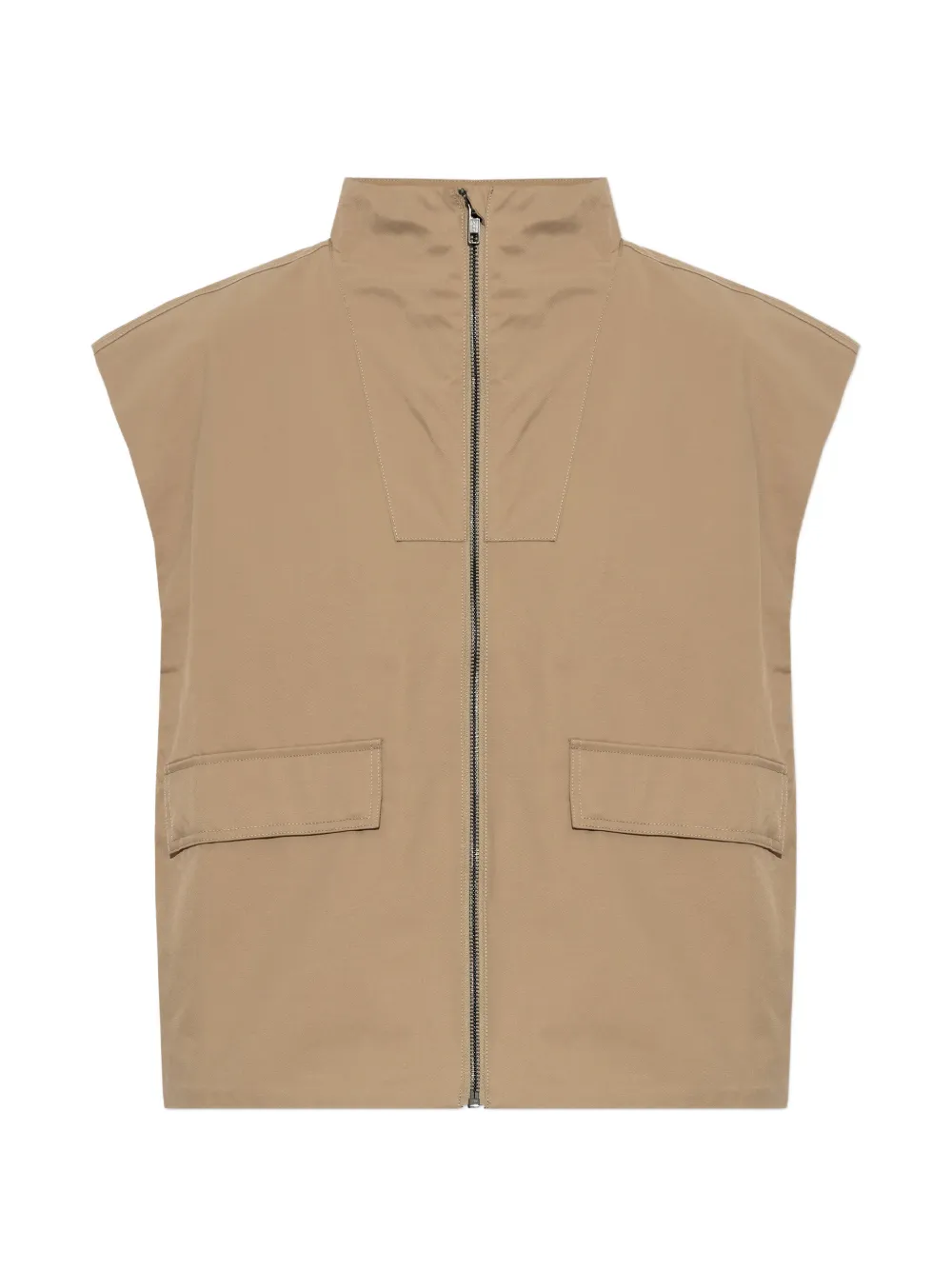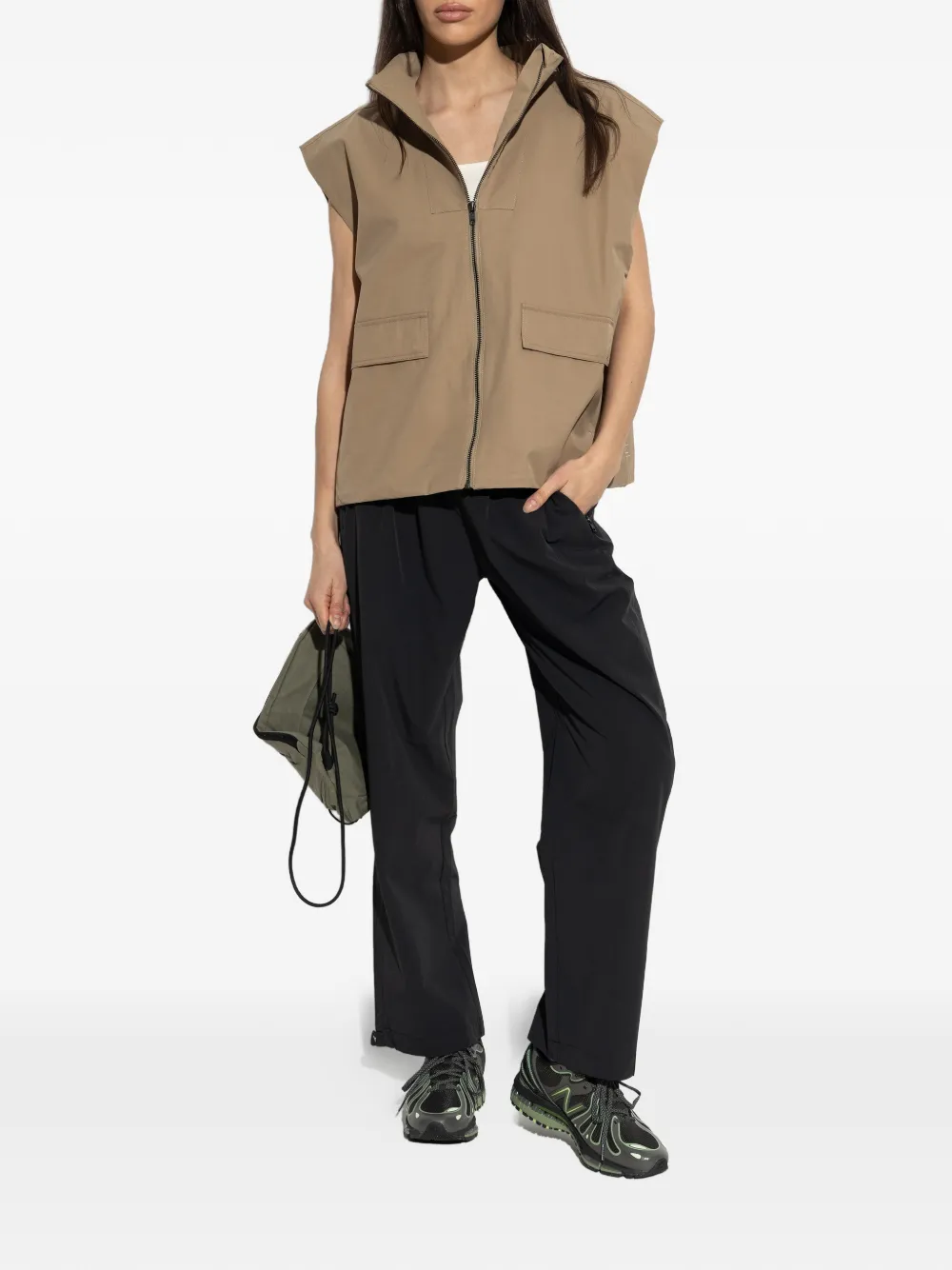 gris pardo cierre de cremallera sin mangas bolsillos en la parte delantera dobladillo recto