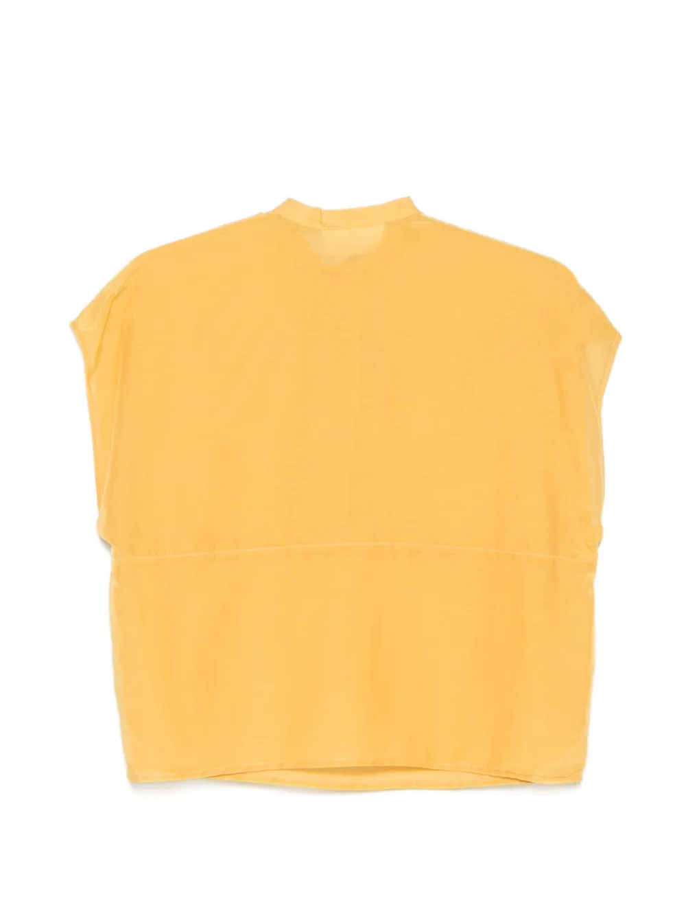 mustard yellow button fastening mandarin collar sleeveless semi-sheer