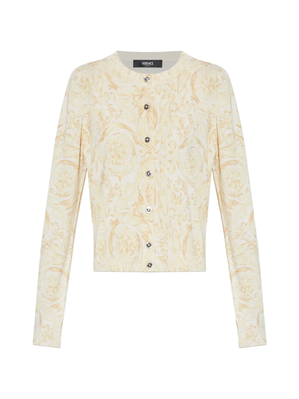 yellow patterned button fastening round neck