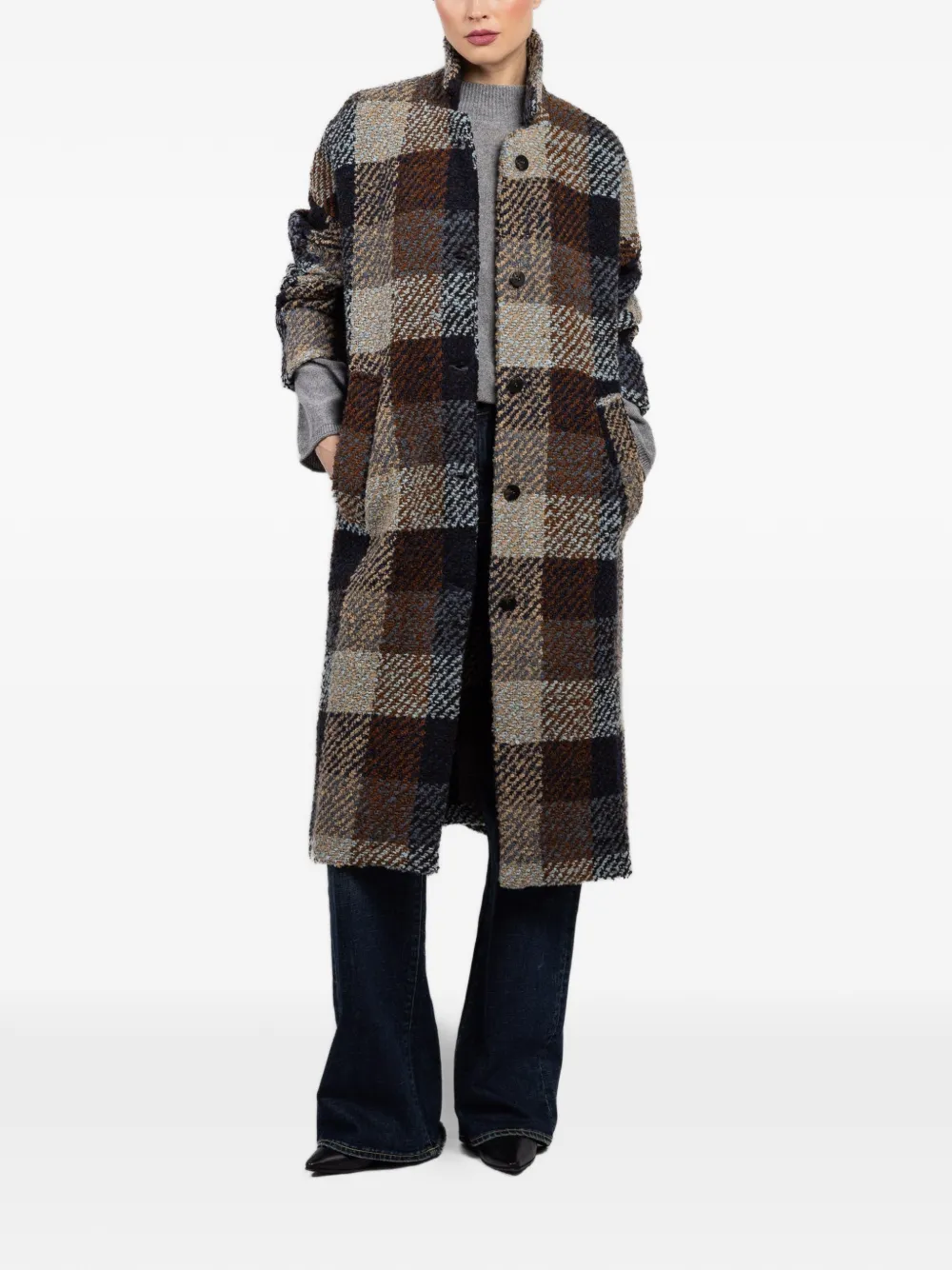 check-pattern buttoned coat