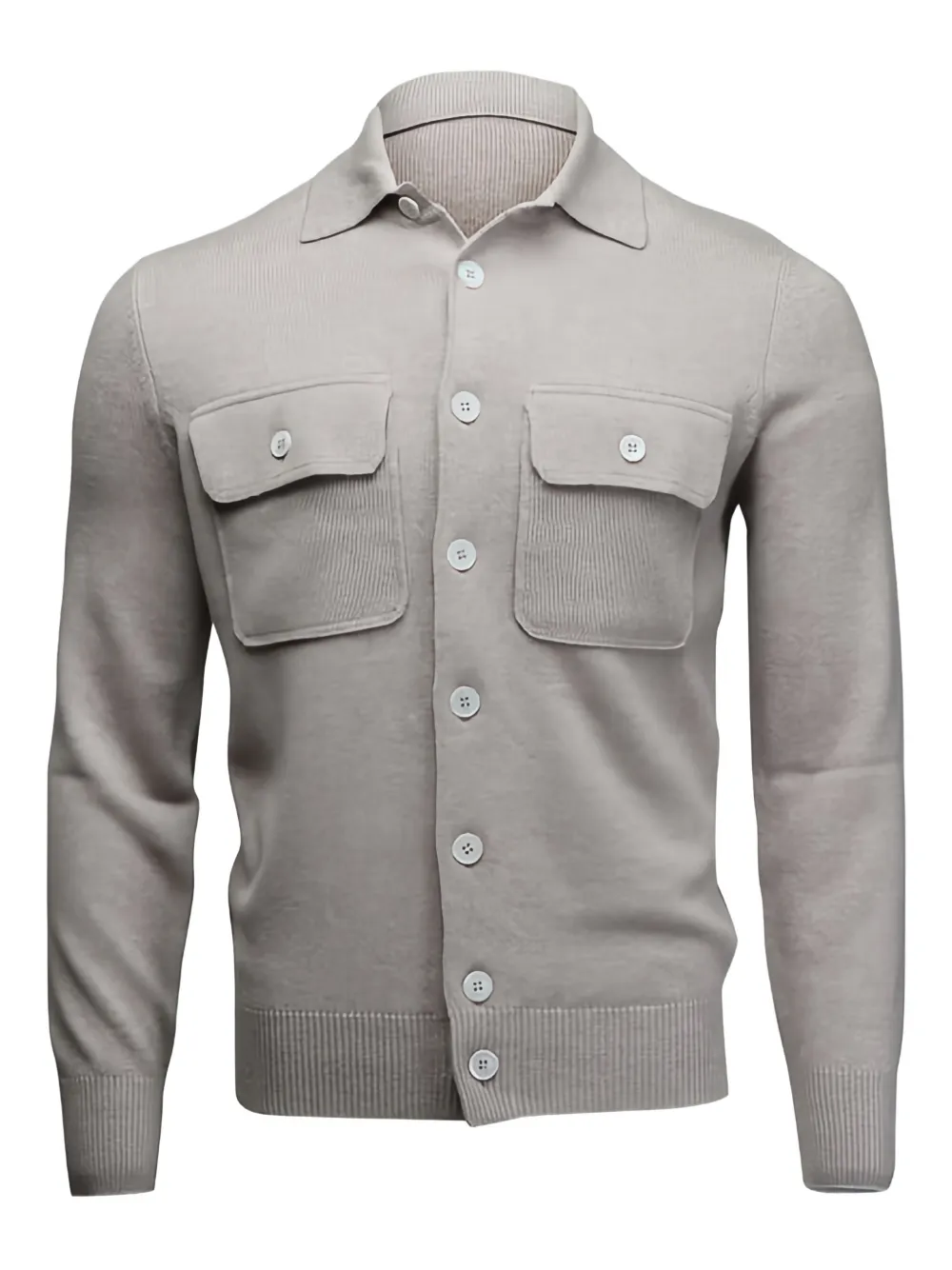 flap-pocket collared cardigan