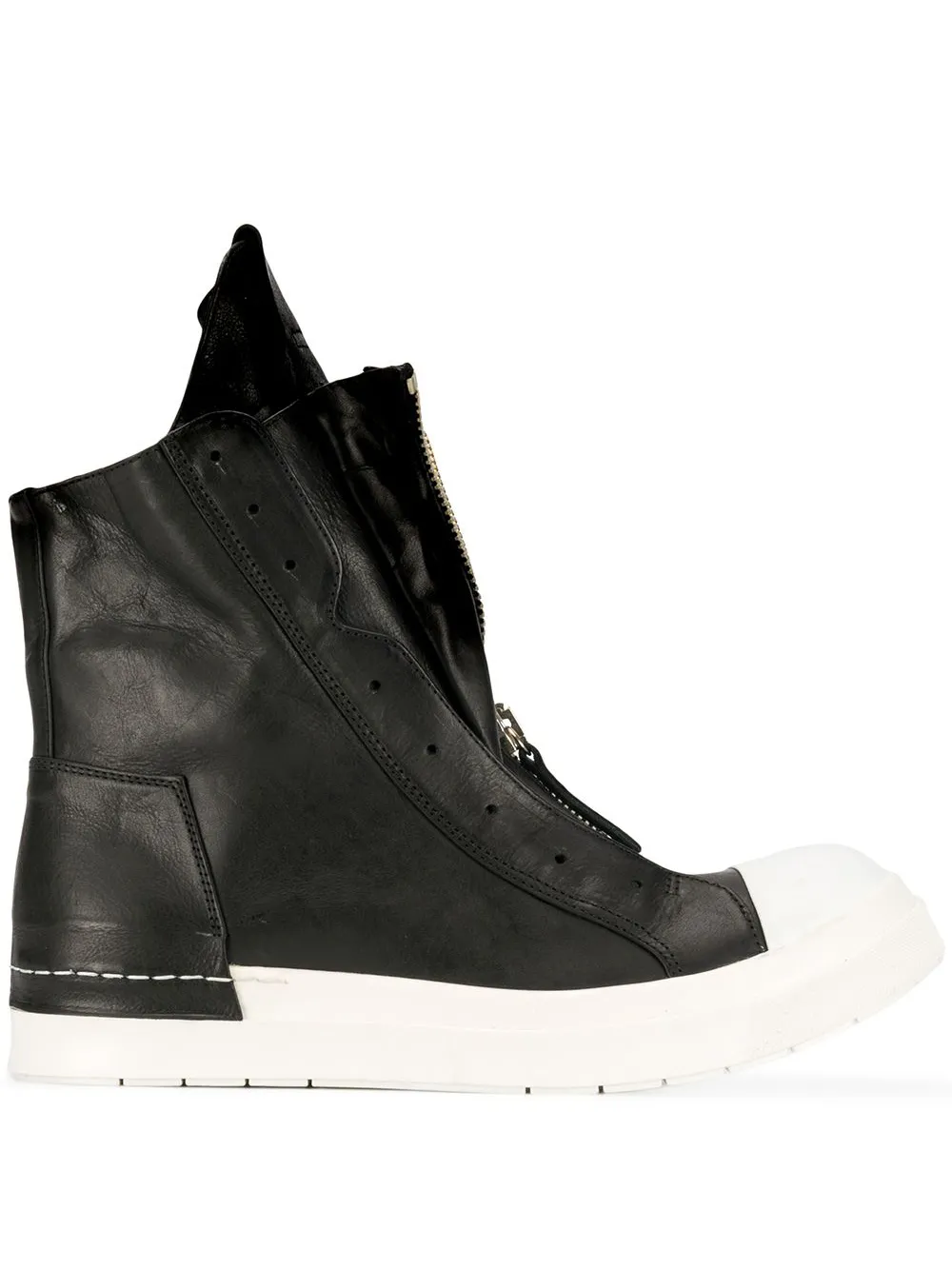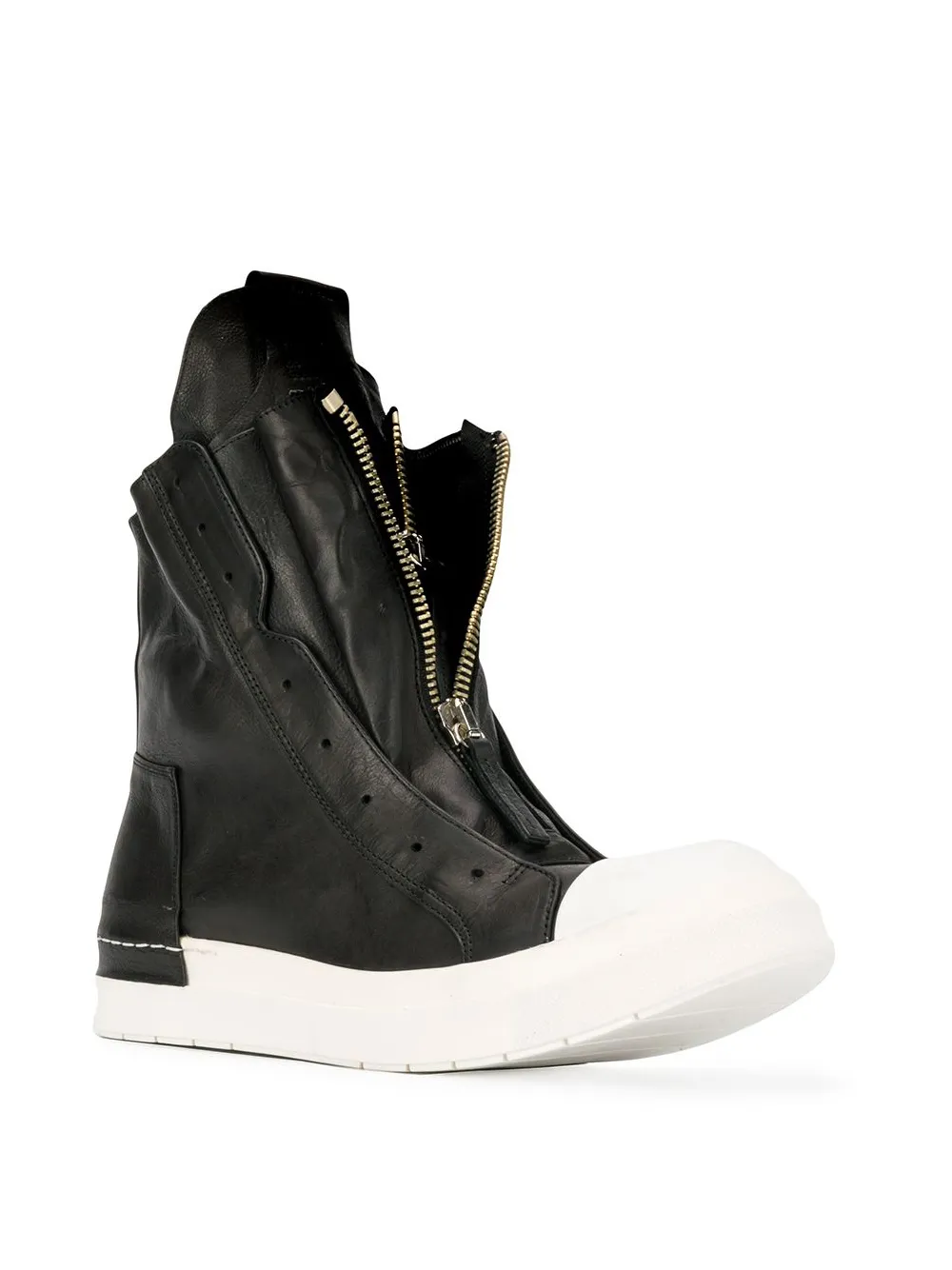 Black leather hi-top trainers from Cinzia Araia featuring a white rubber sole, a contrasting toe cap, a side zip fastening and double front zip details.