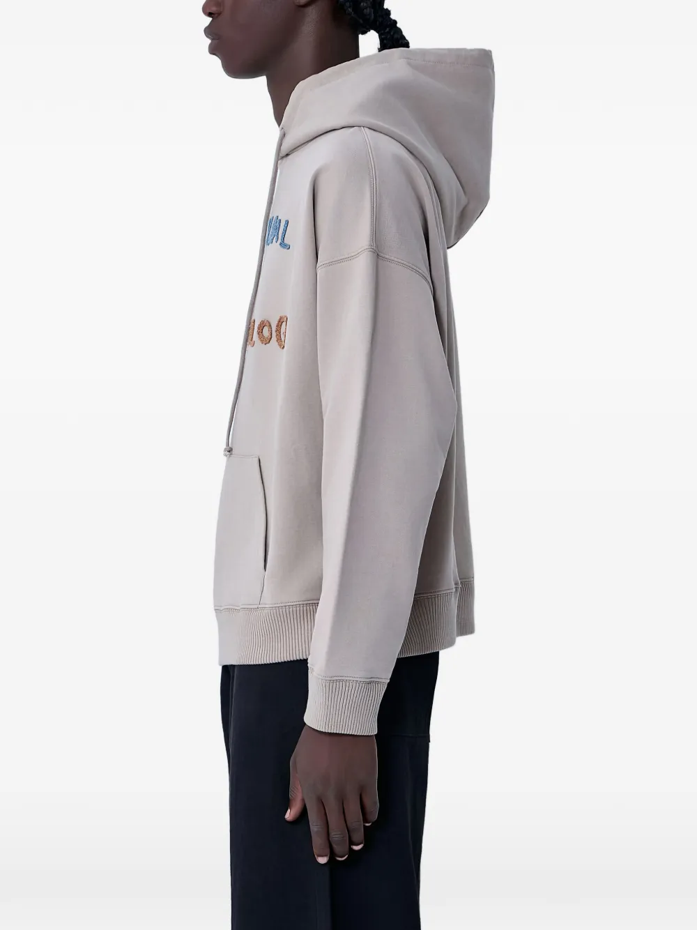 hooded text-motif sweater