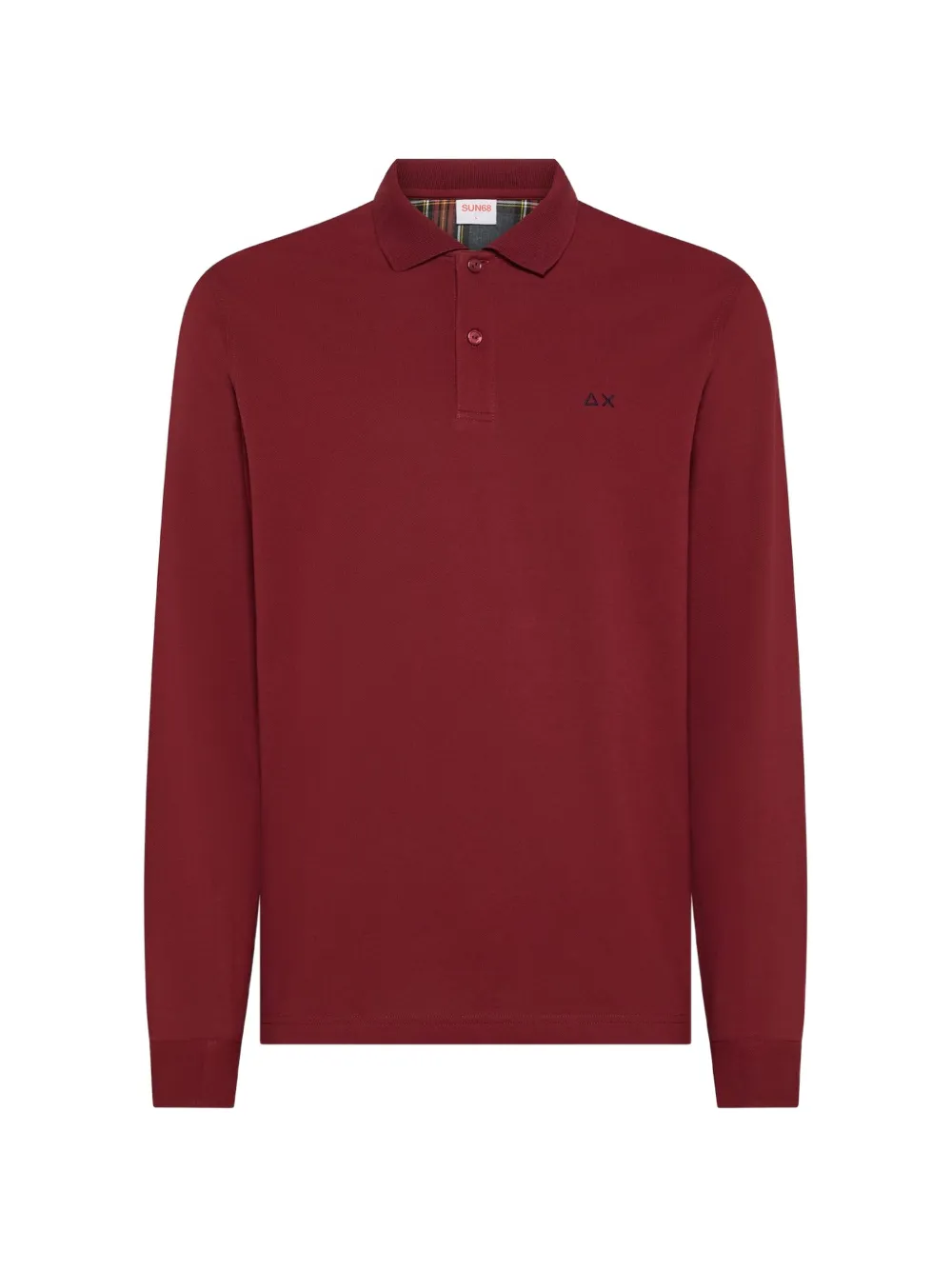 rojo coderas en contraste cuello de polo cierre de botón manga larga puños con botones