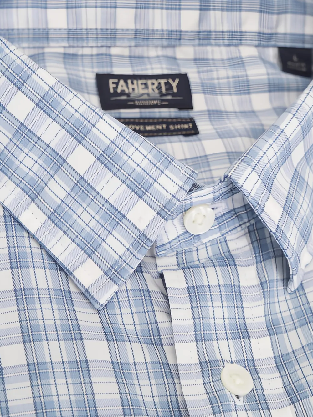 white and blue checked pattern button fastening point collar long sleeves buttoned cuffs