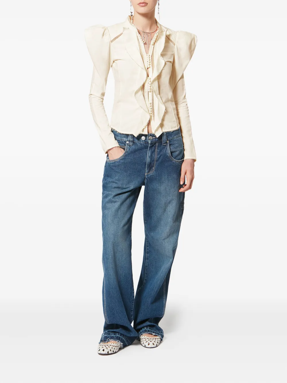 Calina ruffled button blouse
