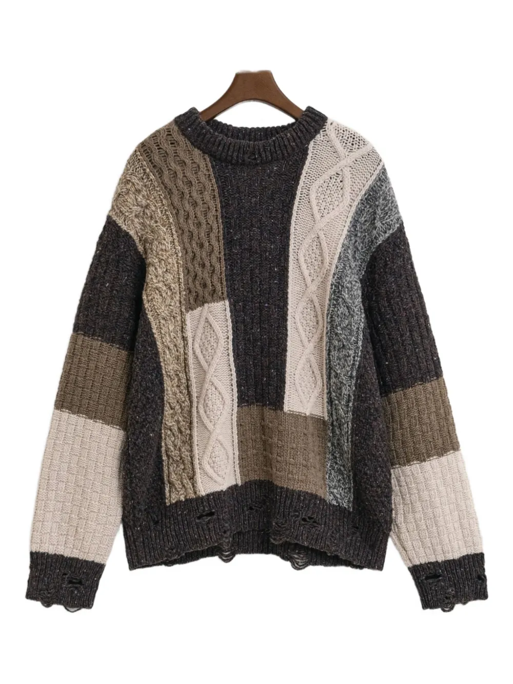 patchwork cable-knit sweater