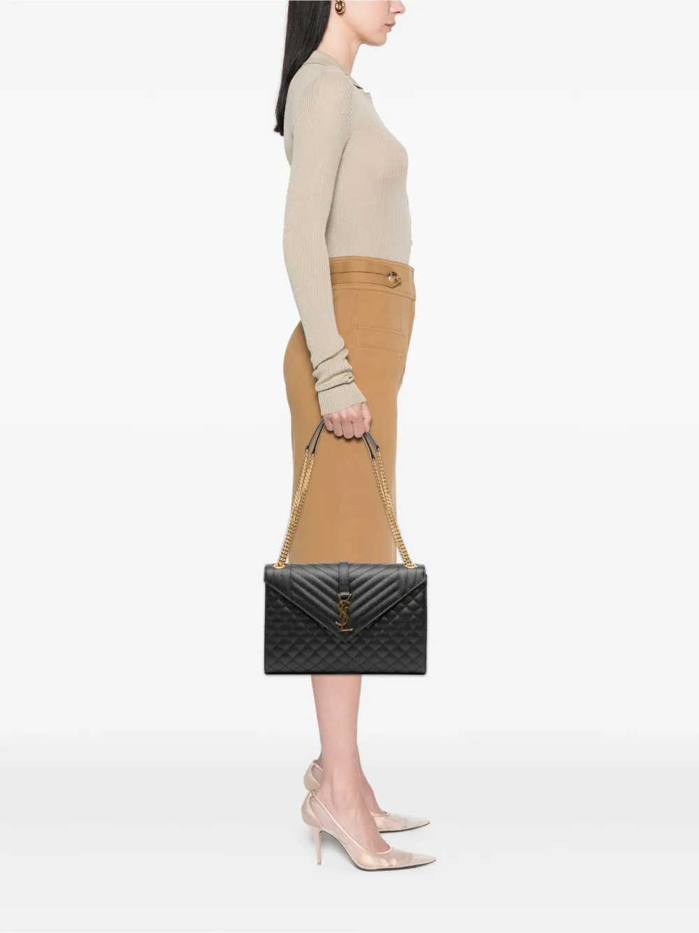 Saint Laurent Pre-Owned2019 Large Grain De Poudre Triquilt Monogram Envelope Bag shoulder bag
