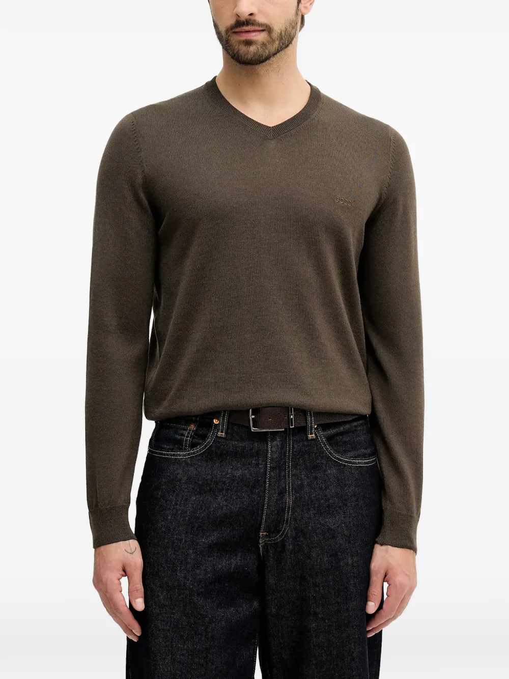 suéter con logo bordado y cuello en V