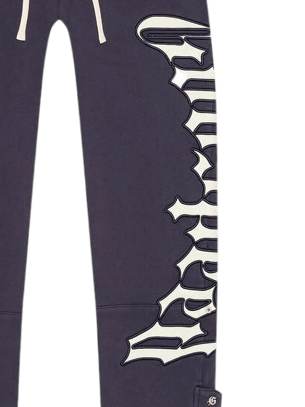 navy blue side logo drawstring fastening side slit pockets buttoned cuffs