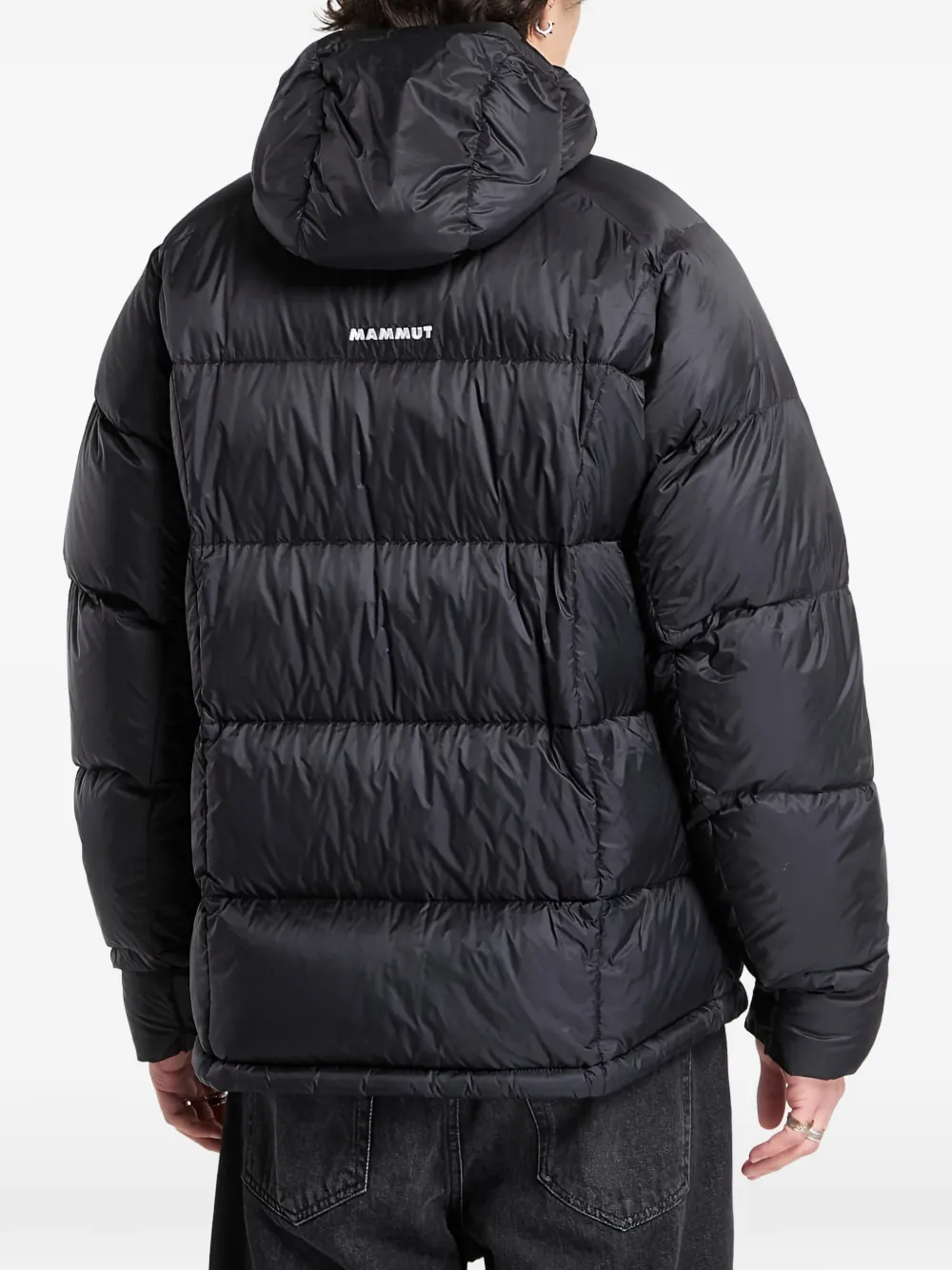 black padded design hooded zip fastening long sleeves elasticated cuffs