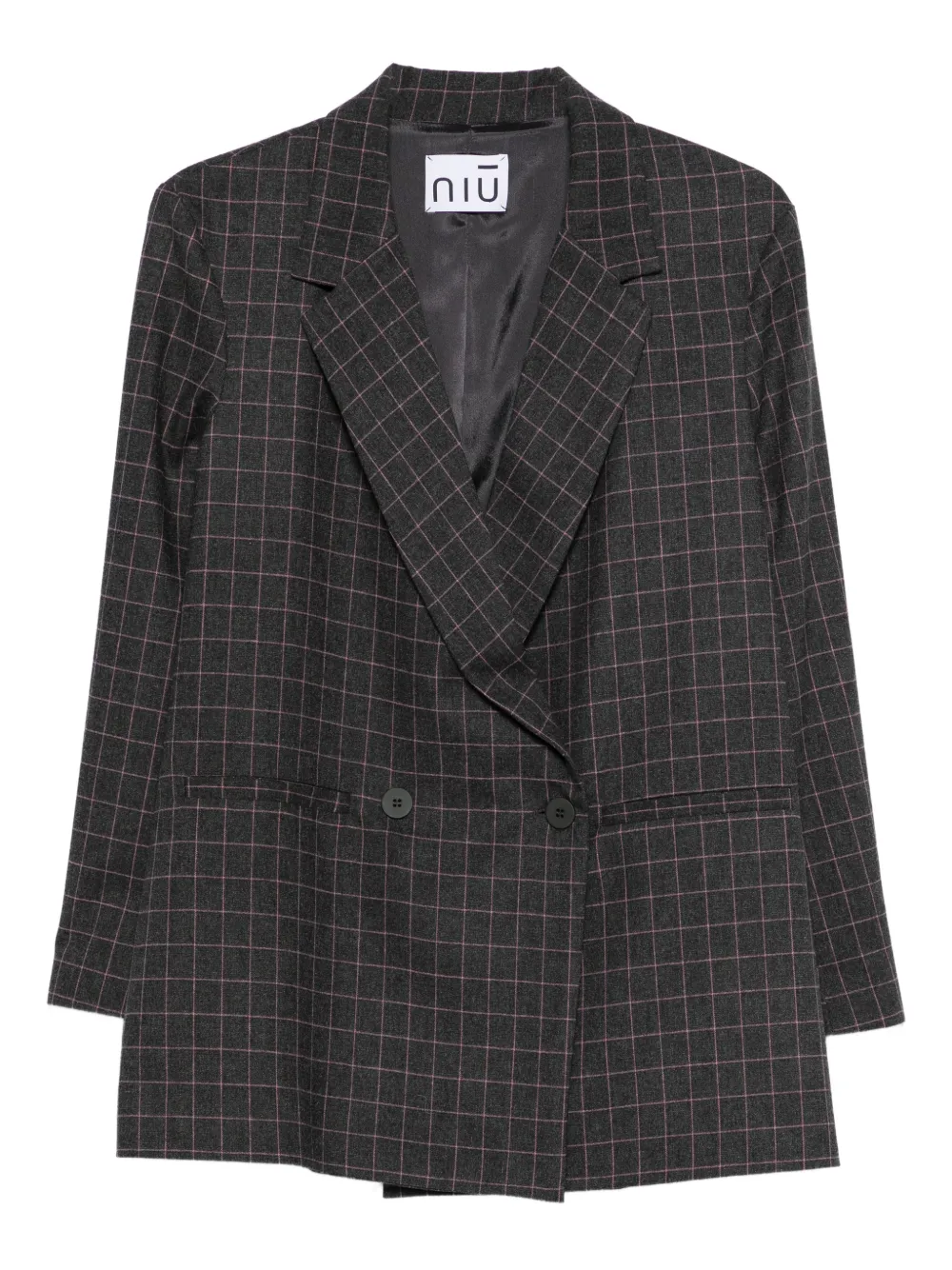 graphite check pattern double-breasted two pockets long sleeves button fastening