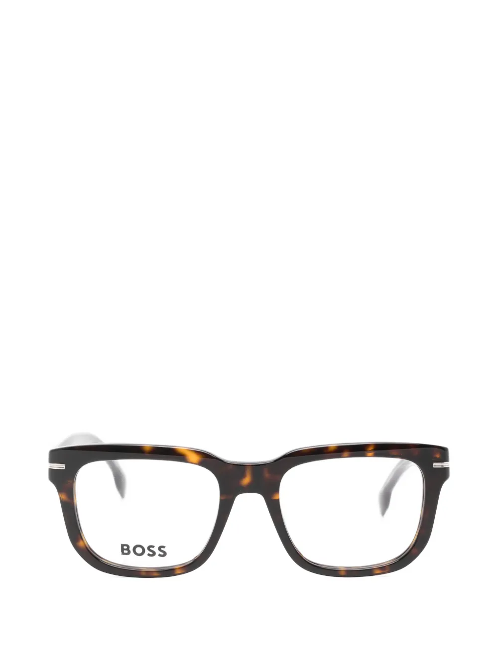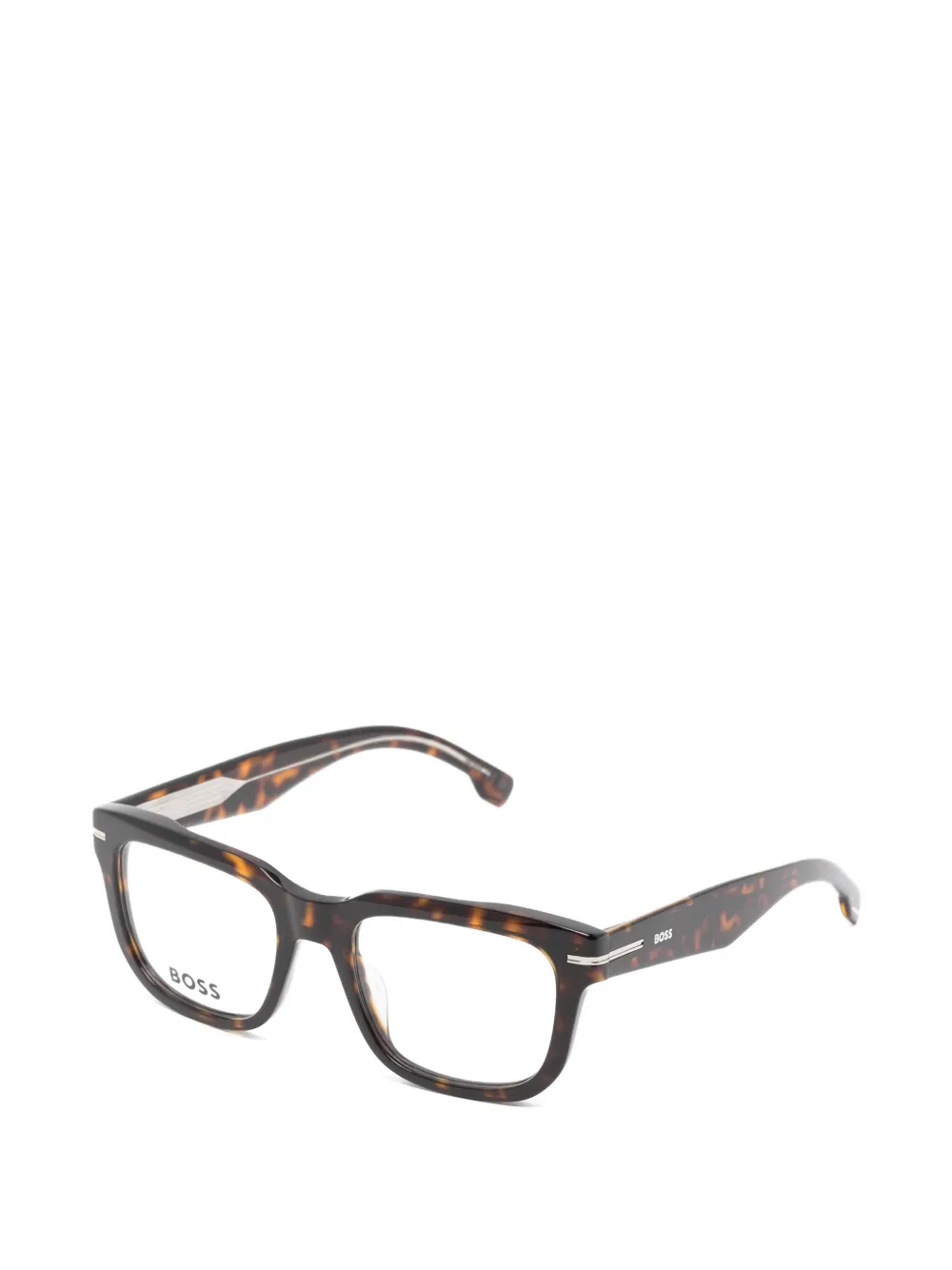 brown tortoiseshell effect square frame clear lenses logo lettering at the temple curved arms All glasses from FARFETCH are sold as non-prescription frames. These glasses come with a protective case.