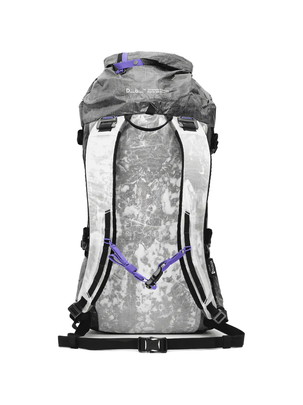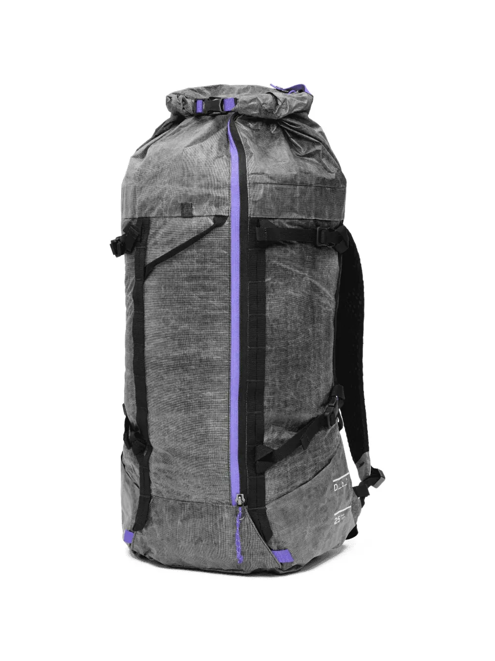 dark grey ripstop texture roll-top closure buckle-fastening strap adjustable shoulder straps front zip-fastening pocket logo print to the front
