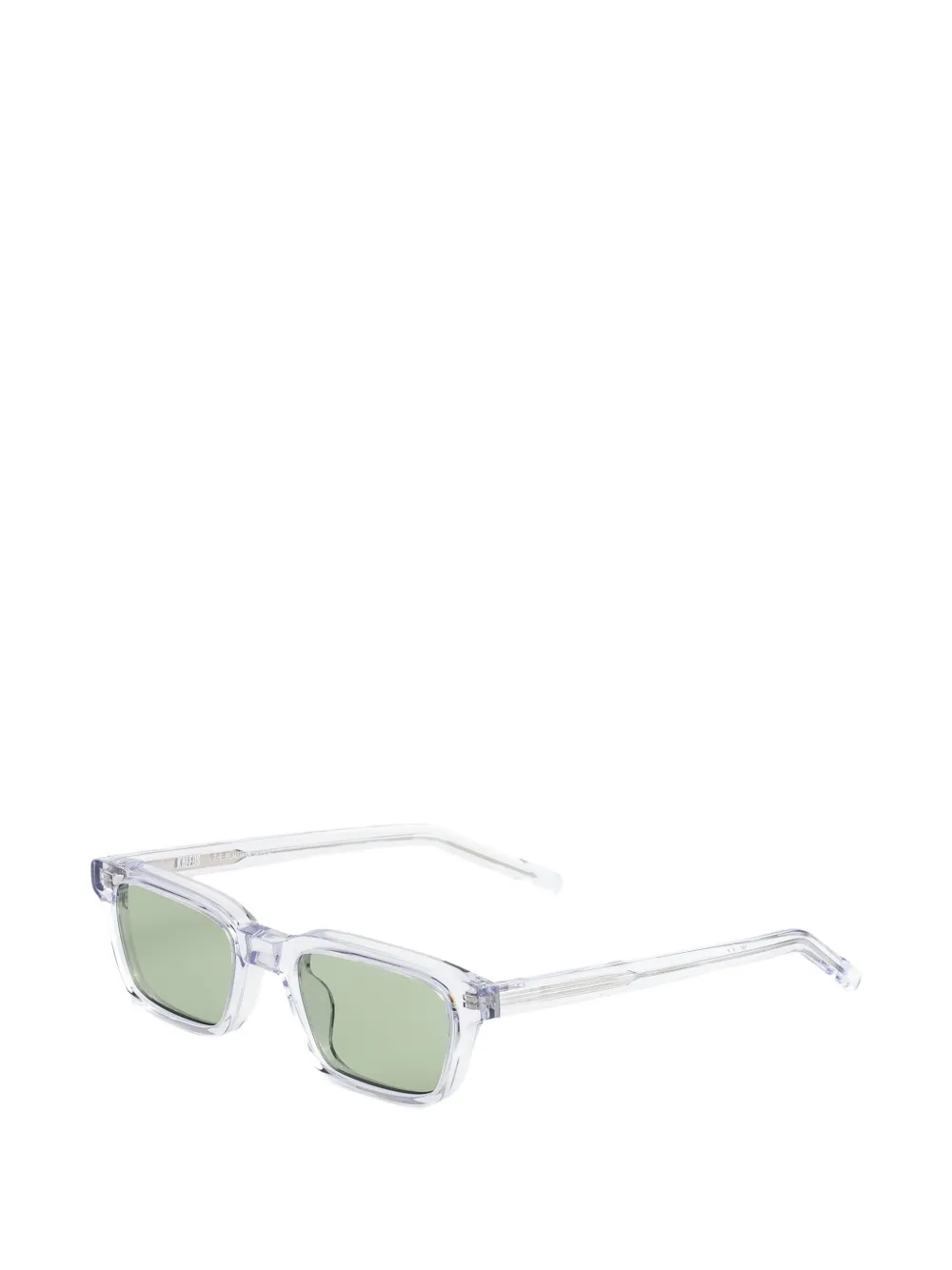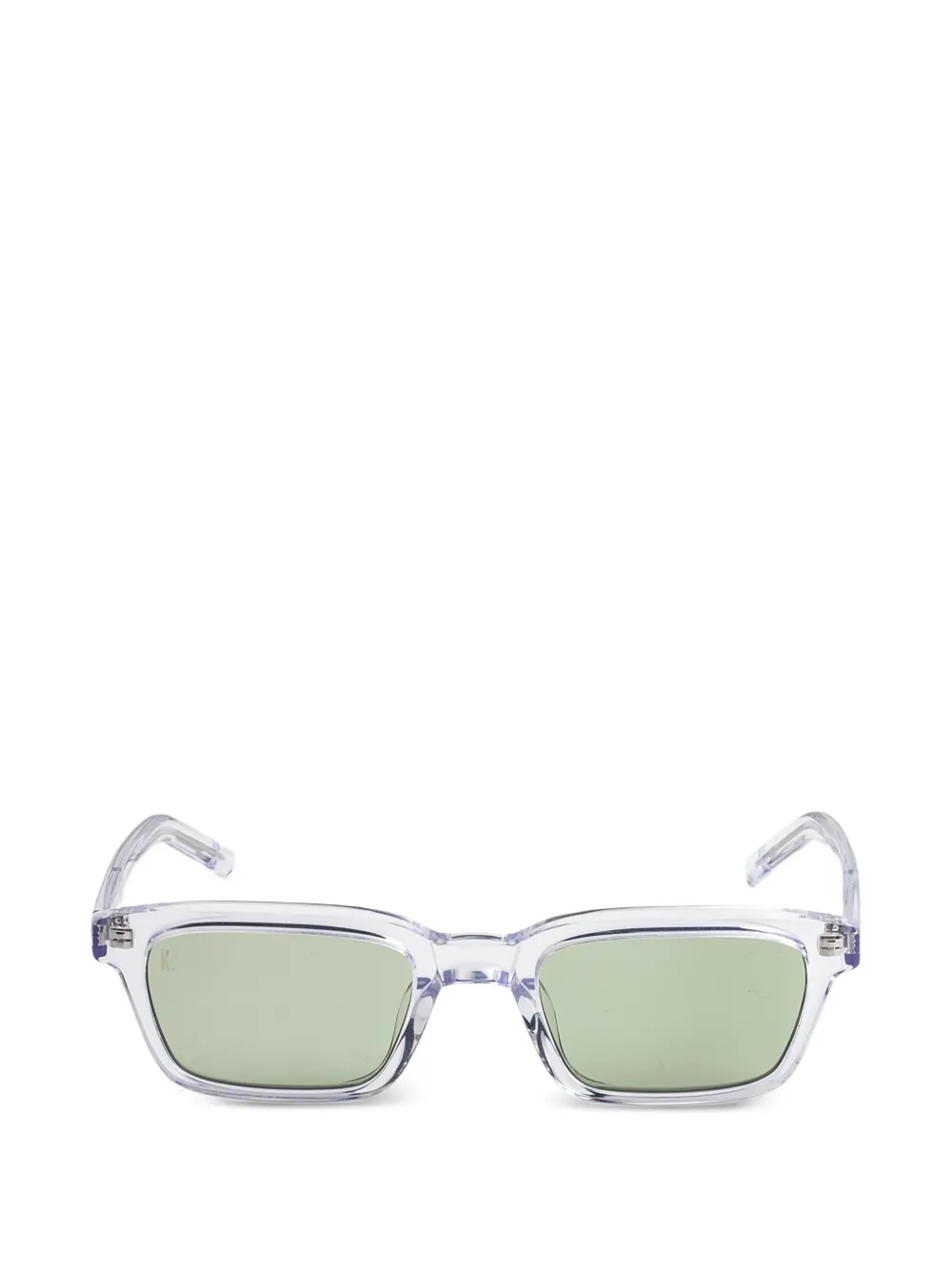 transparent rectangular frame tinted lenses nose pads These glasses come with a protective case.