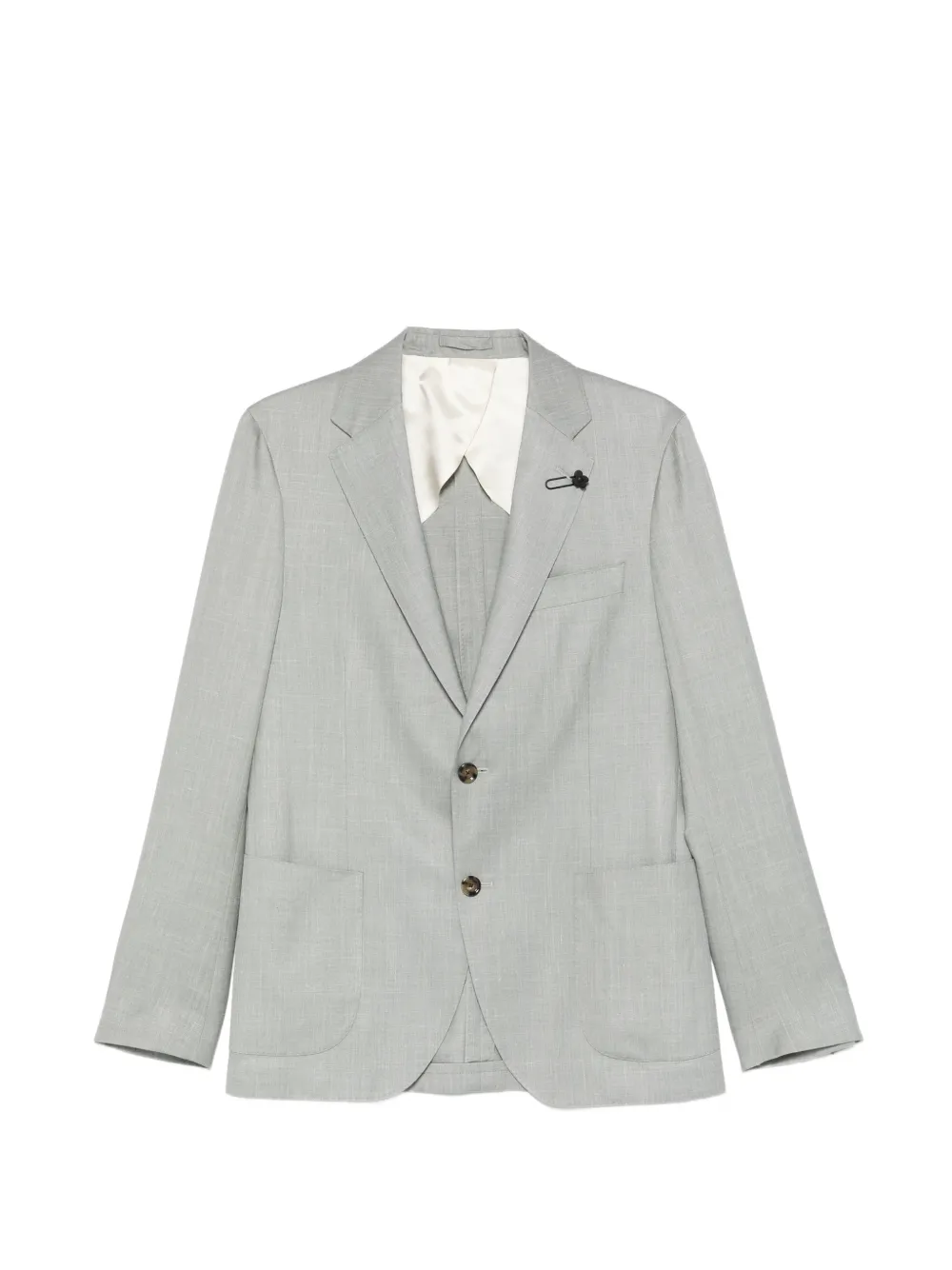 green flap pockets button fastening notched lapels long sleeves chest welt pocket