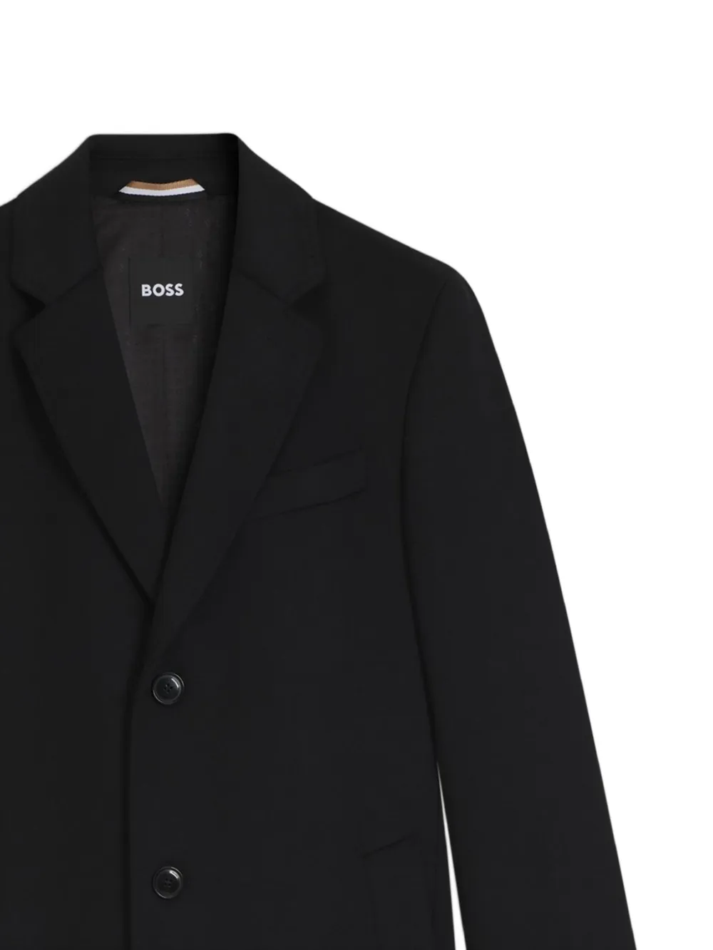 black notched lapels button fastening welt pocket buttoned cuffs
