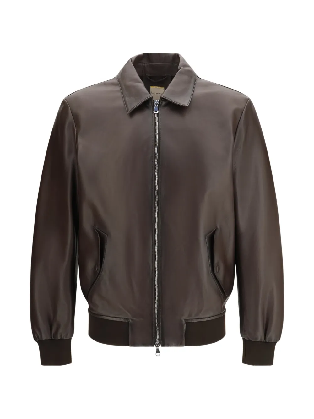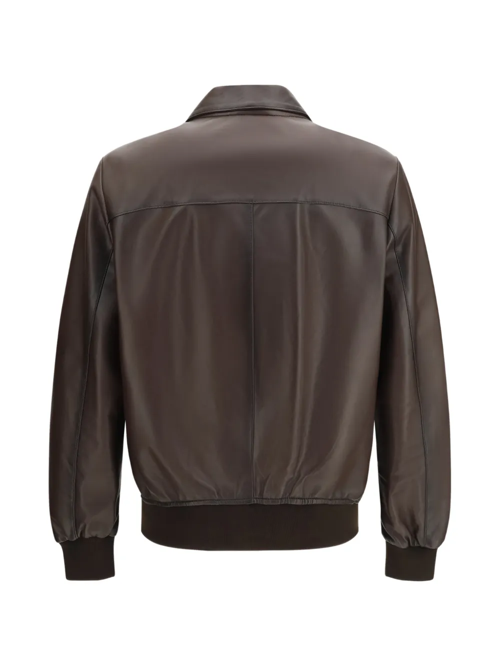 brown zip fastening ribbed hem collared welt pockets